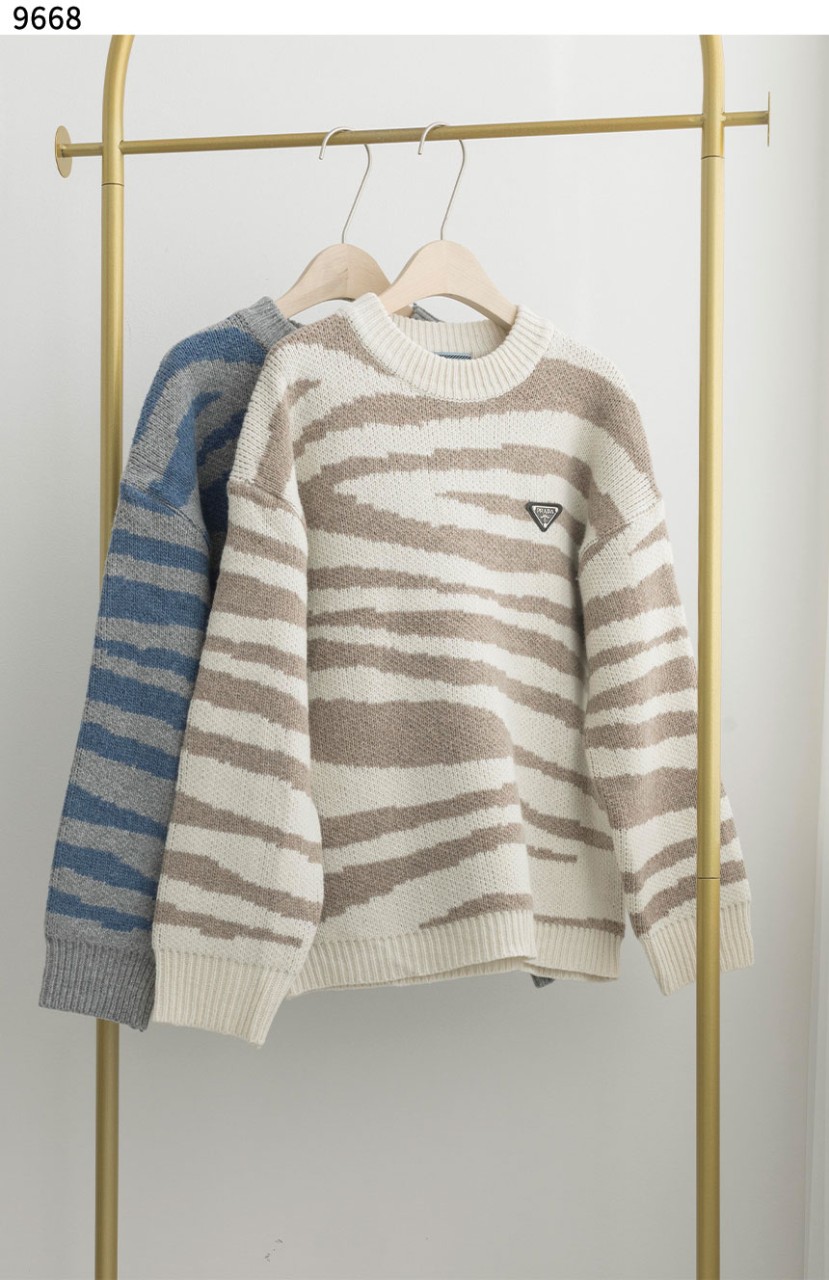 프라다 [PRADA] 프라다 오버 사선 지브라 패턴 스웨터