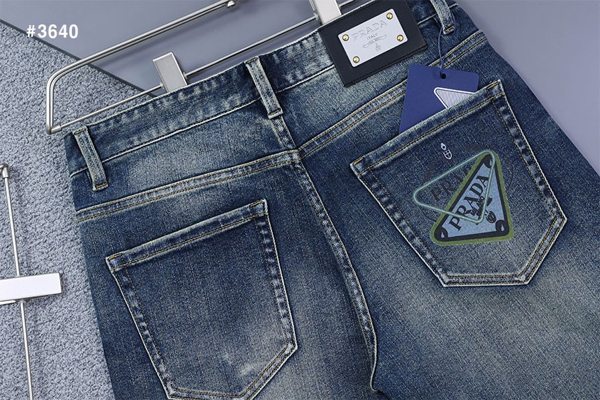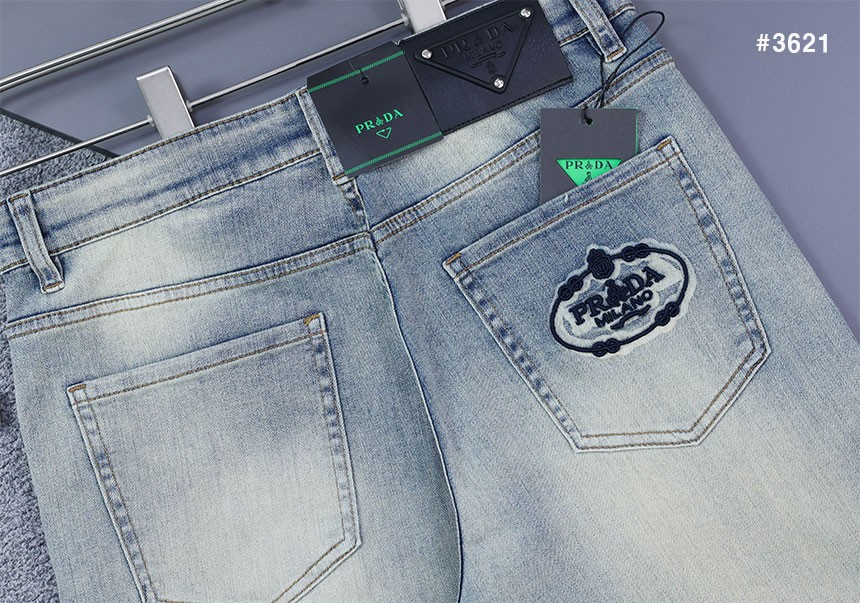 프라다 [PRADA] 로고 패치 워싱 데님진