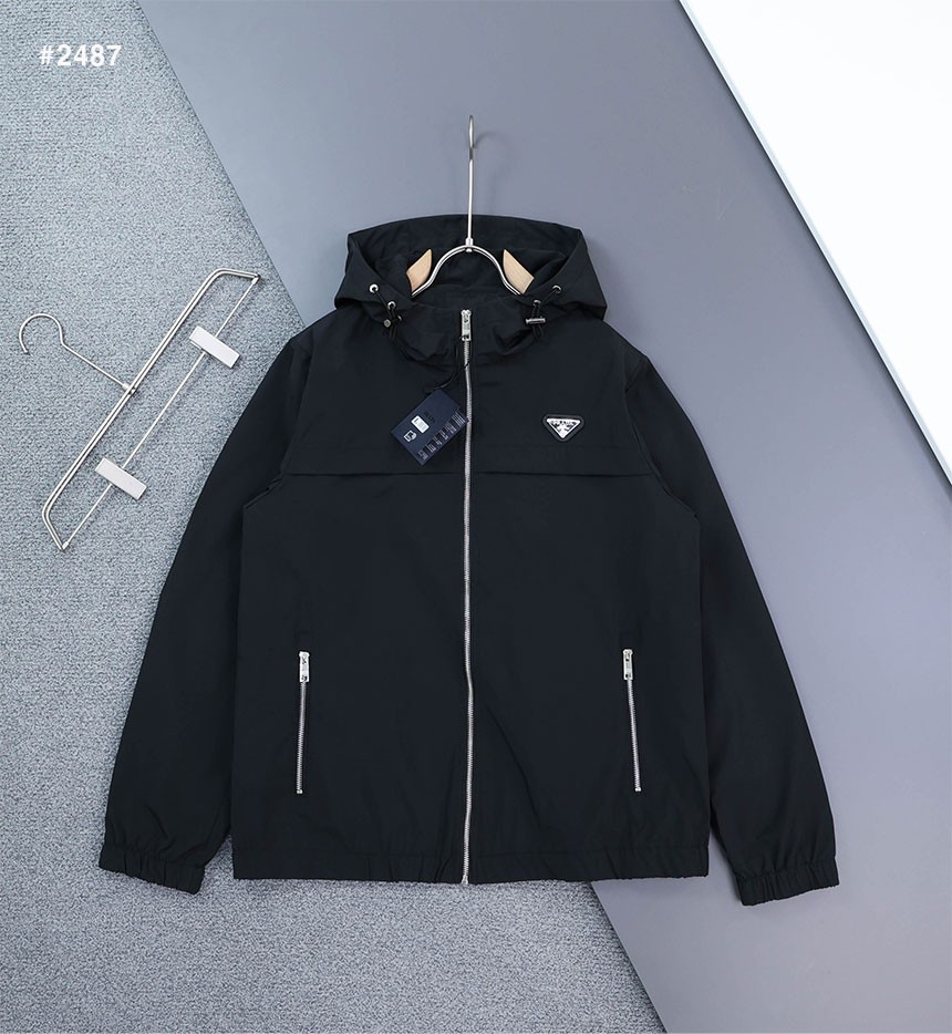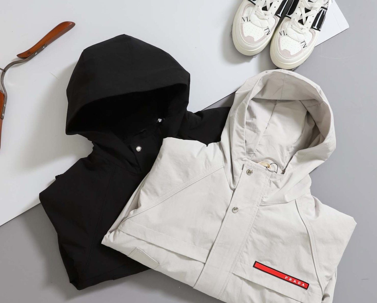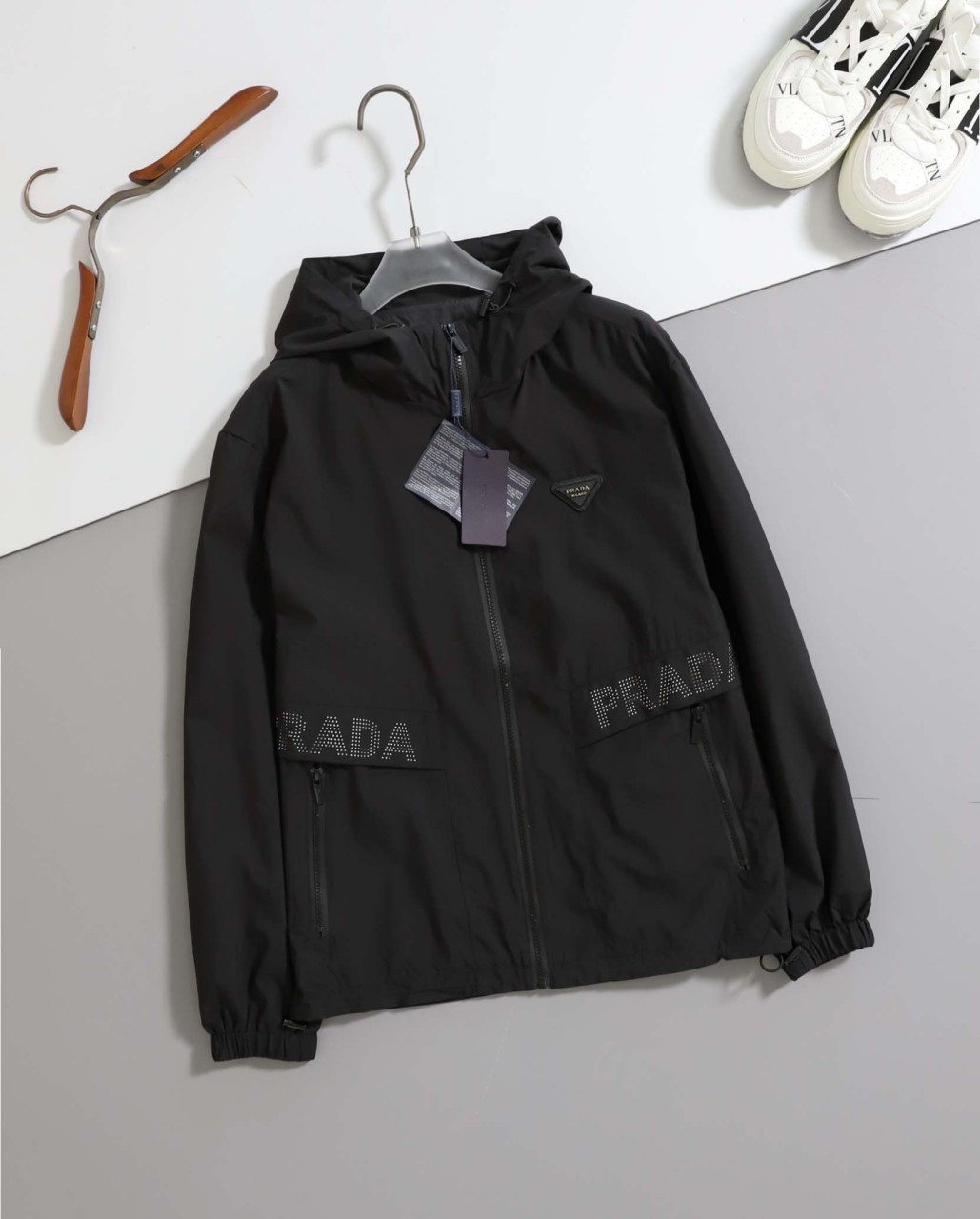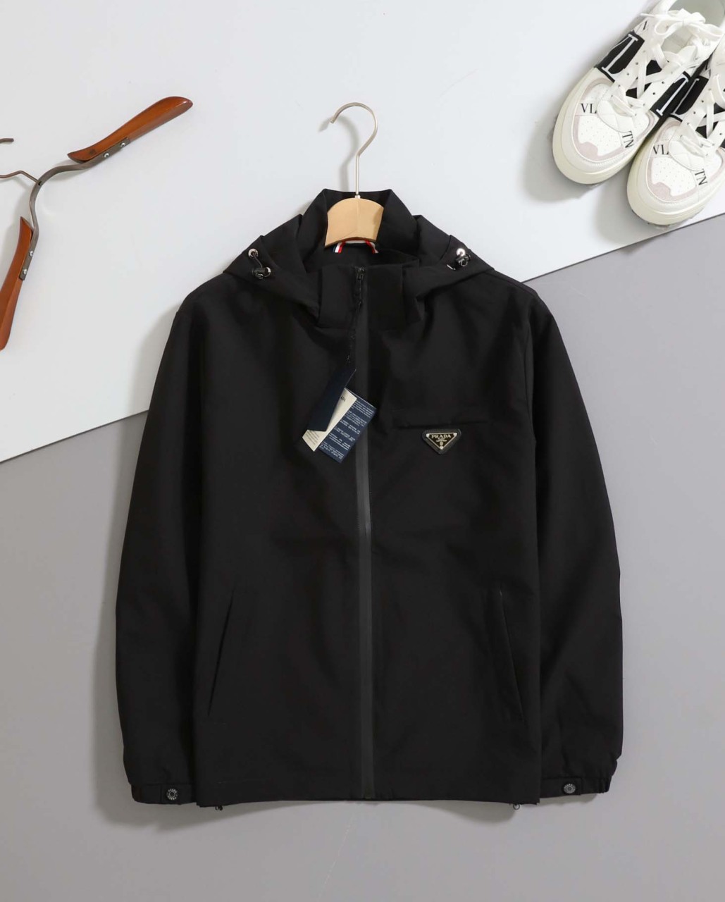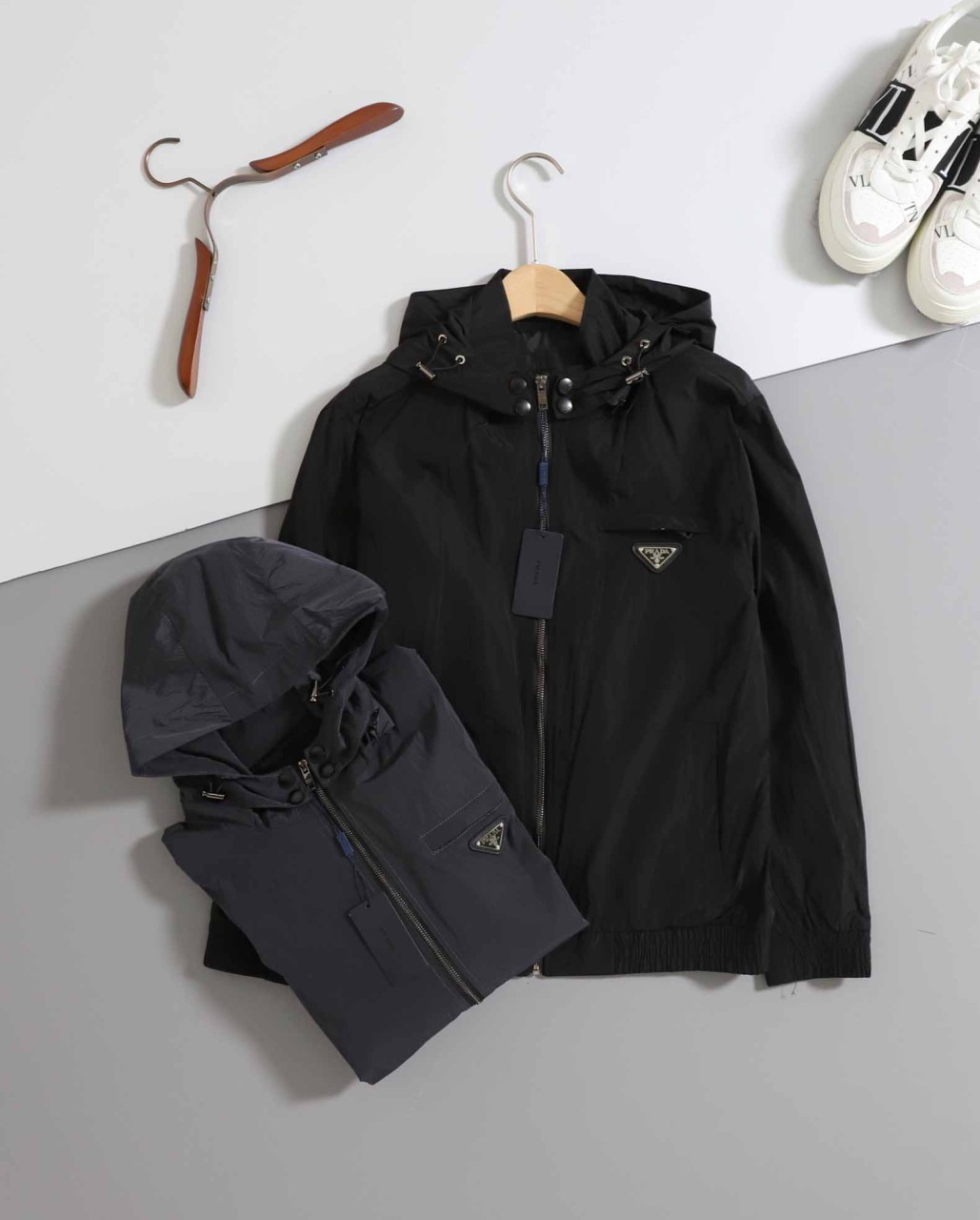 [PRADA] 프라다 남성 삼각로고 스트링 후드 바람막이