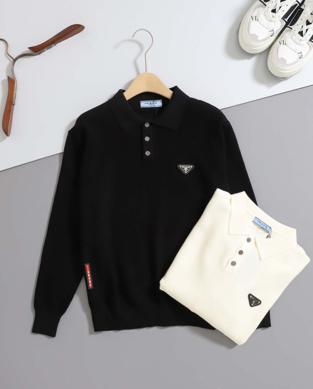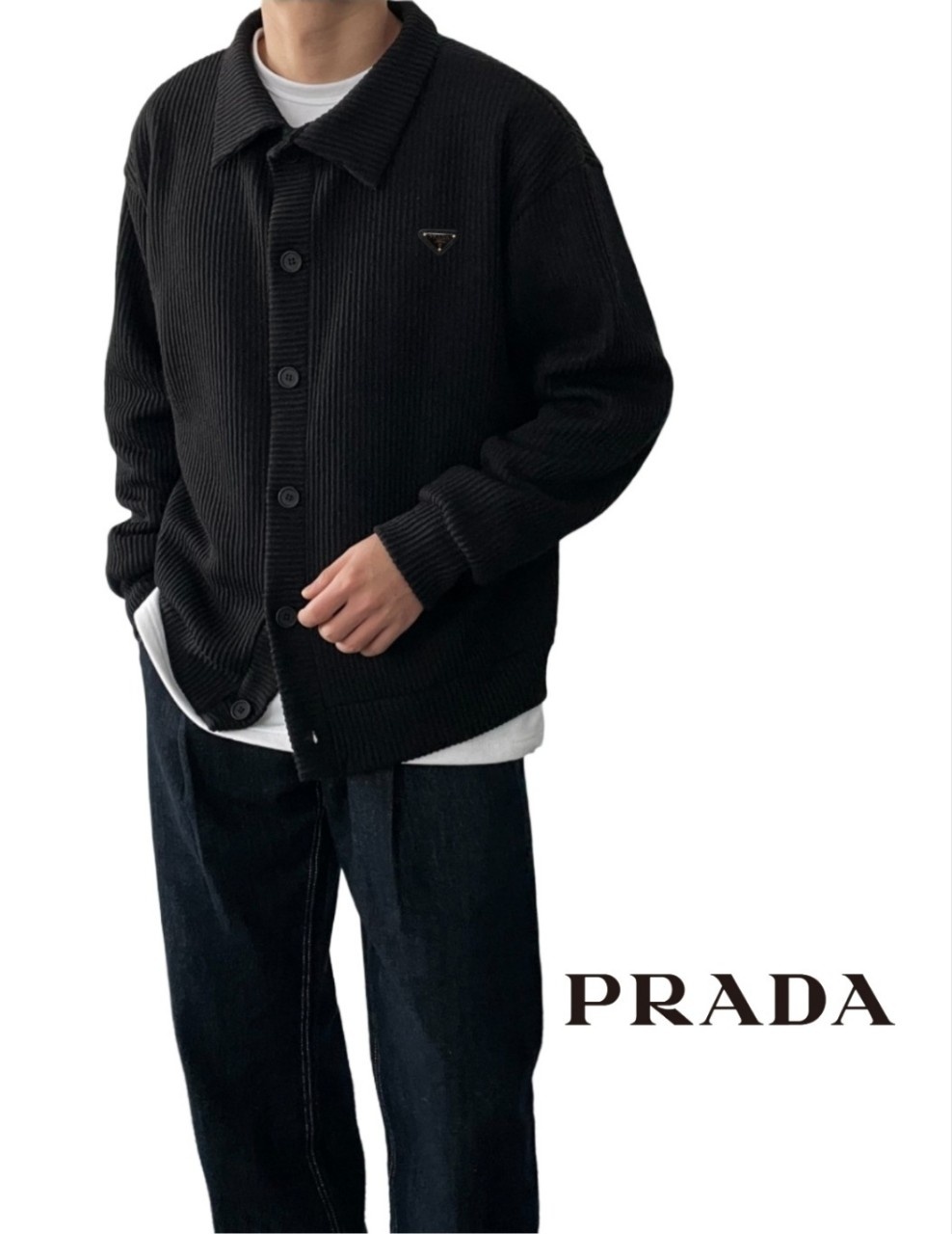 프라다 [ P*ADA ] 레드탭 포인트 카라 니트