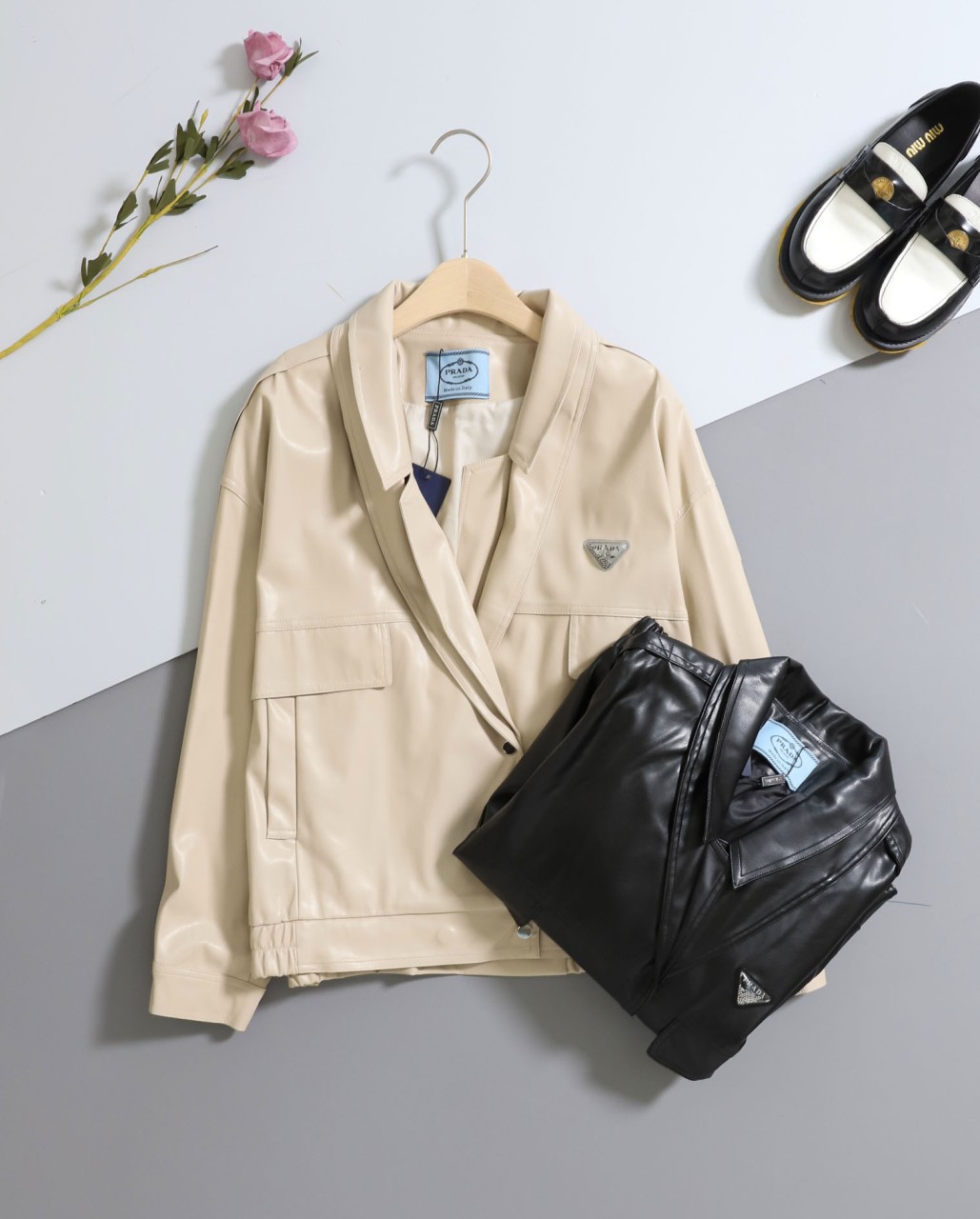프라다 [ P*ADA ] 삼각로고 디테일 레더 자켓