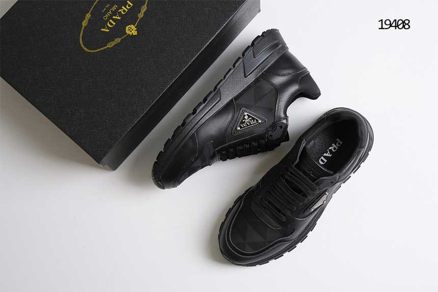 [PRADA] 프라다 이니셜로고 블랙 로우탑 스니커즈