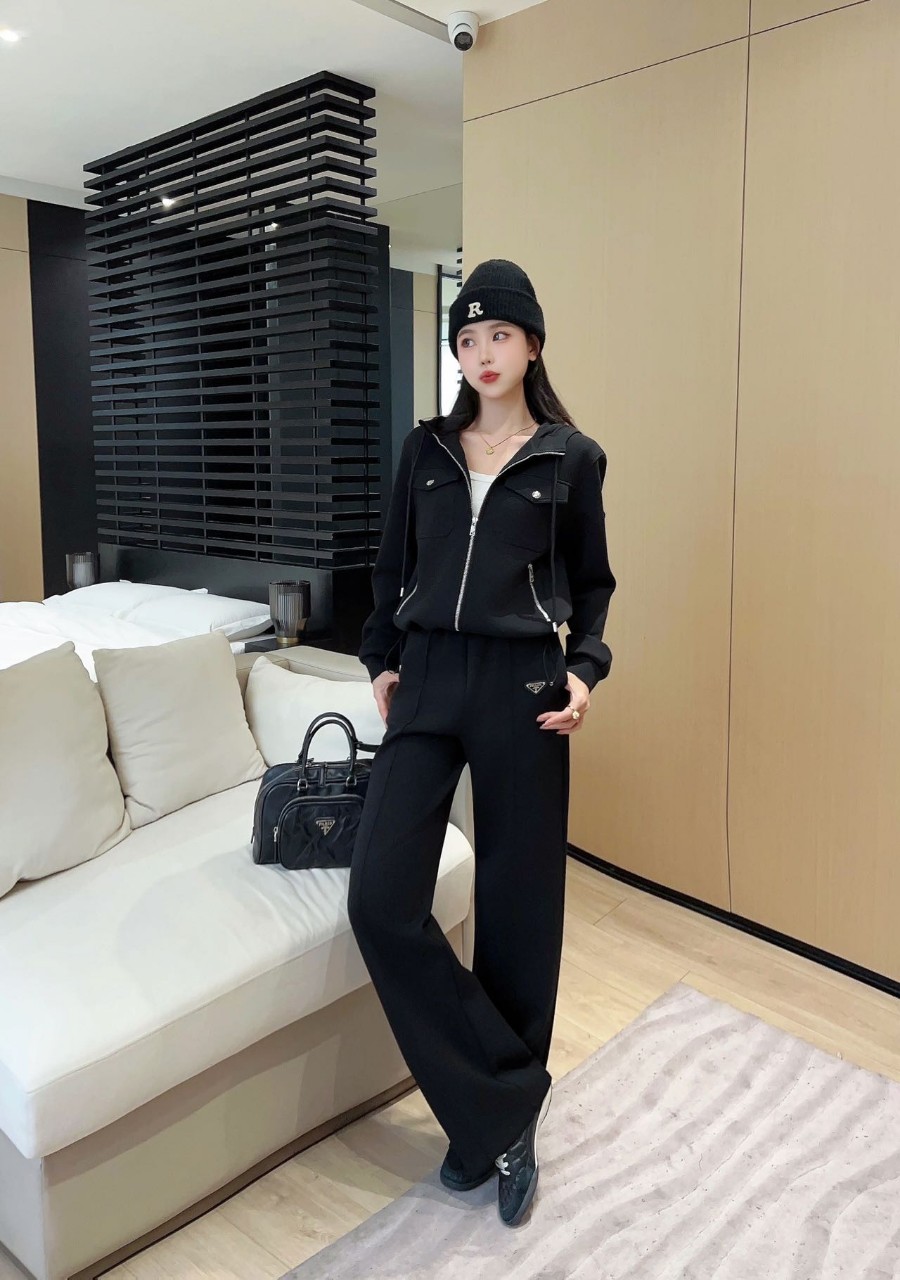 [PRADA] 프라다 삼각로고 풀집업 후드자켓 & 밴딩 조거셋