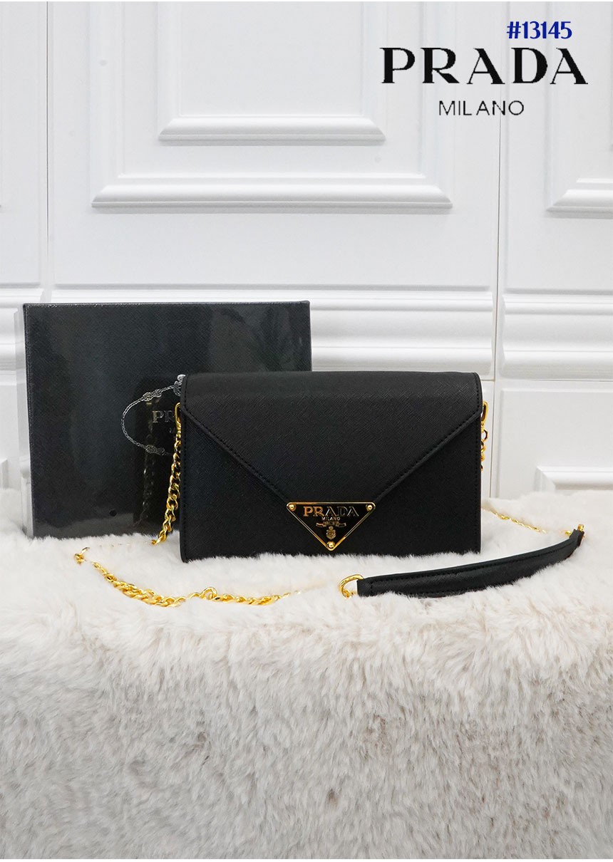 프라다 사피아노 삼각 로고 클러치백 블랙