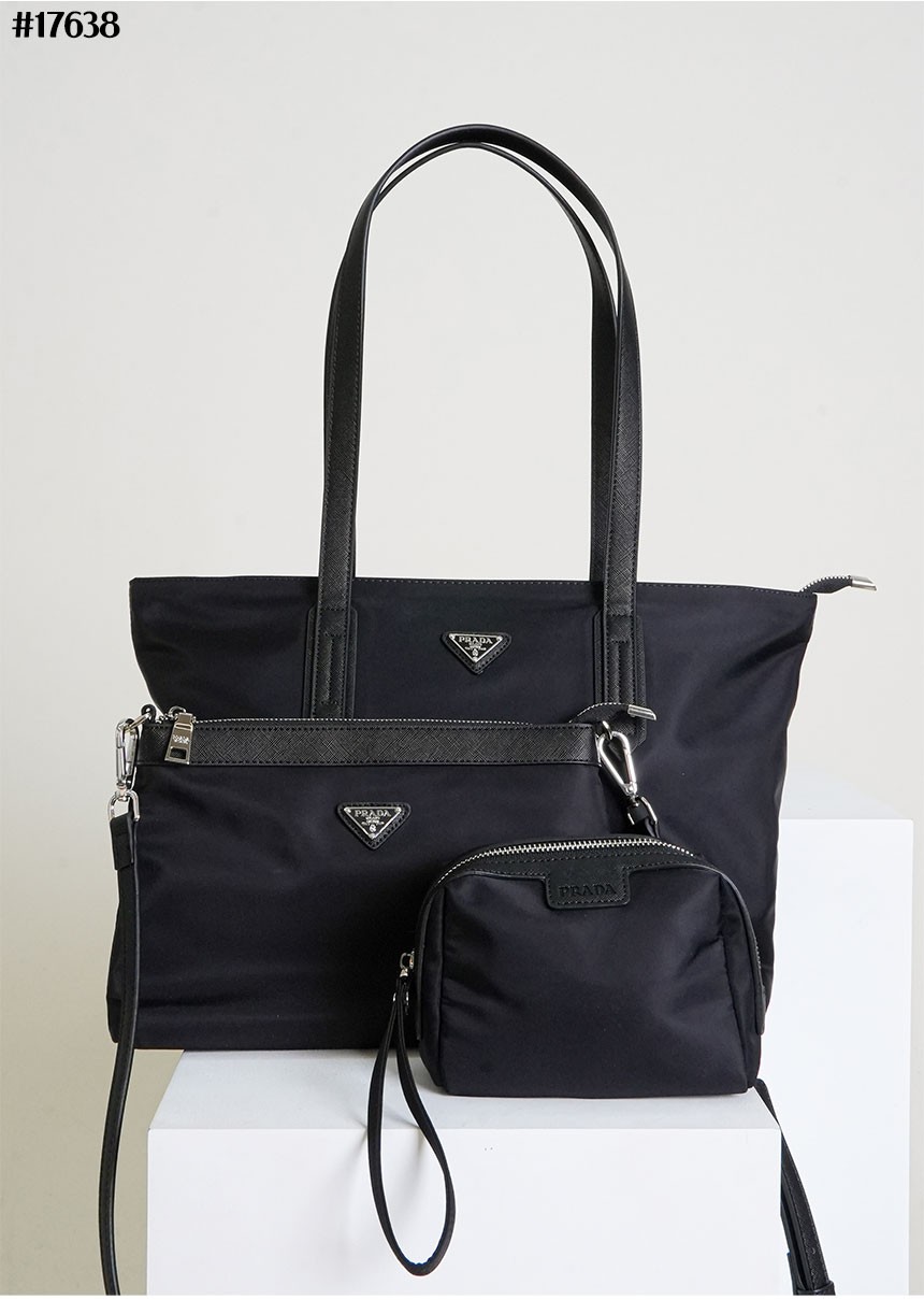 [PRADA] 프라다 리나일론 쇼퍼백 & 리나일론 앤 사피아노 레더 숄더백 & 리나일론 트래블 파우치 3CPS 셋