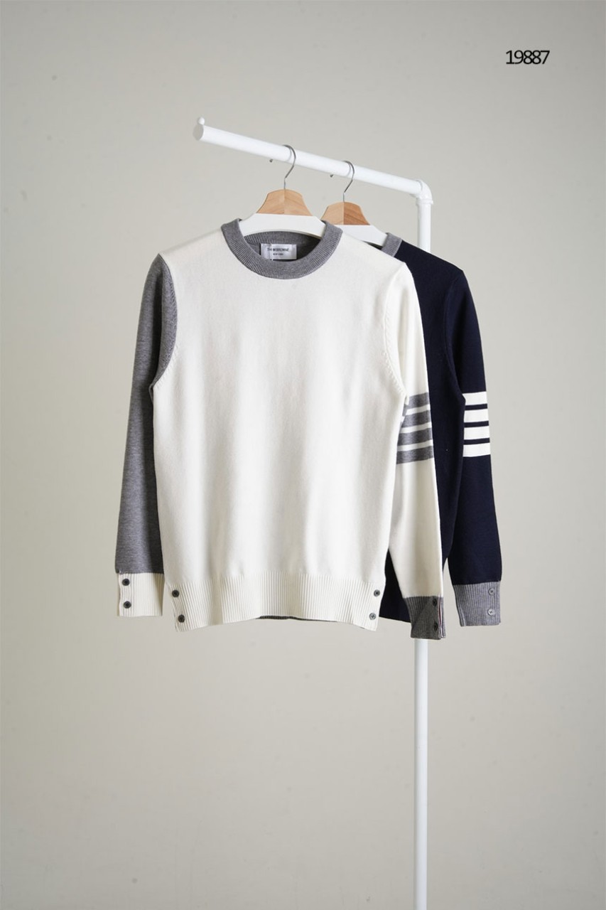 [THOM BROWNE] 톰브라운 사선완장 투톤배색 울 라운드 니트 스웨터