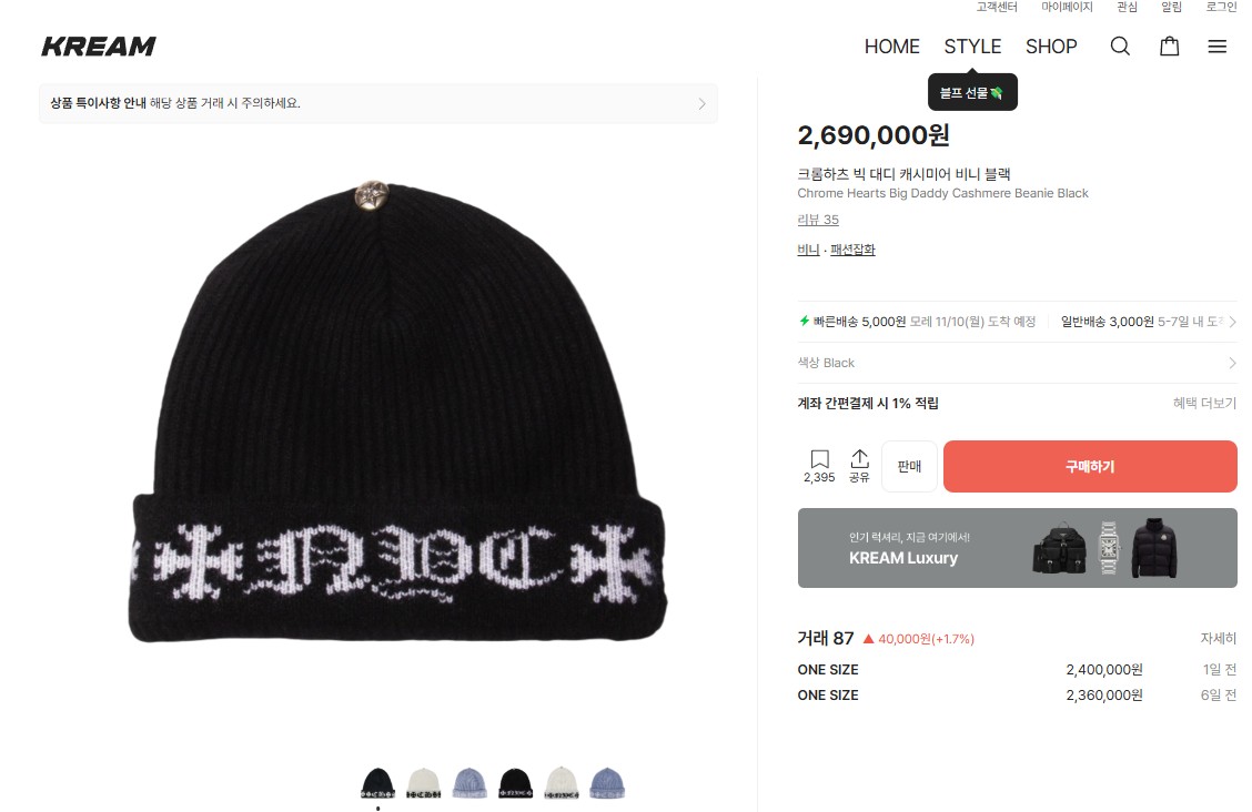 크롬하츠 빅 대디 비니 블랙