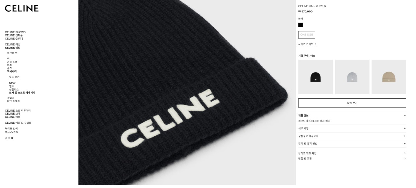 [CELINE] 셀린느 수급 리브드 울 비니