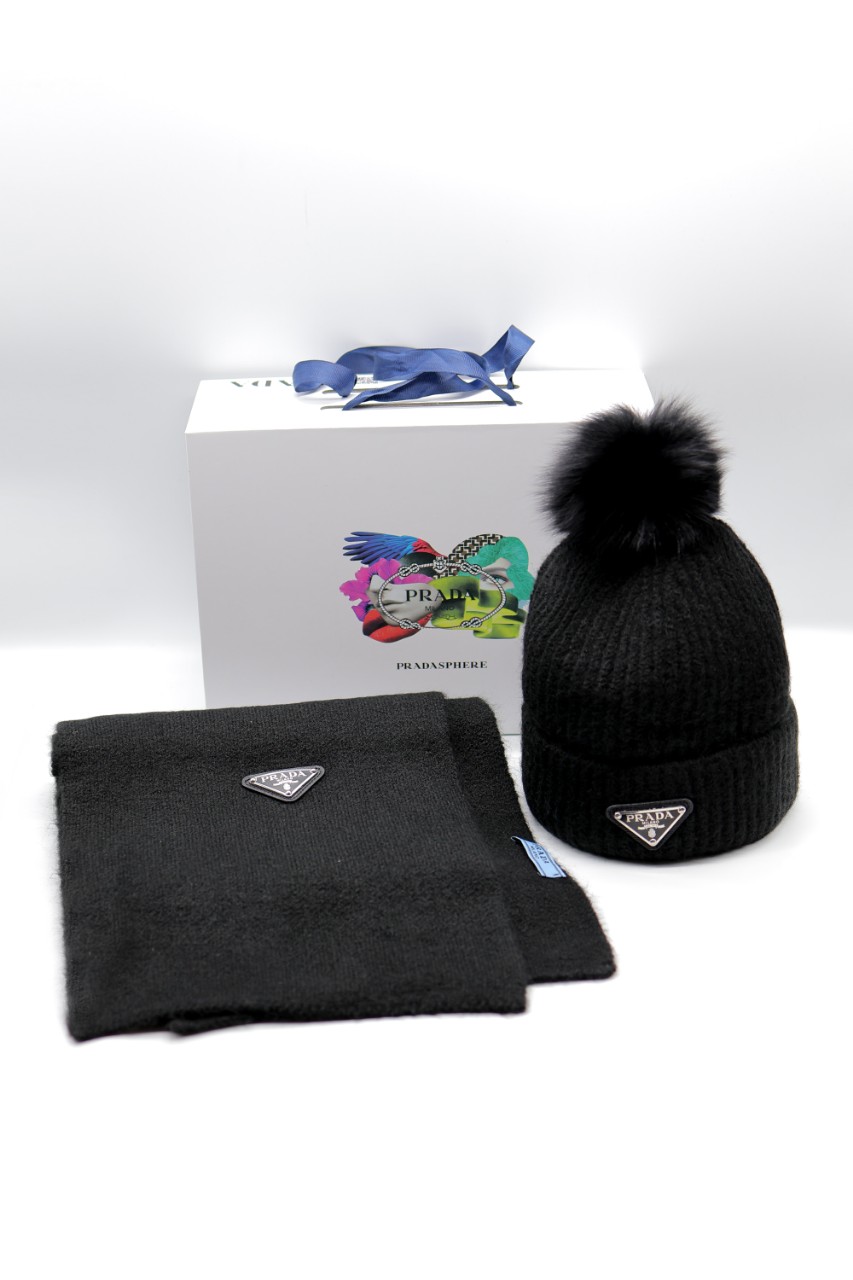 프라다 양털모자 목도리 2종세트