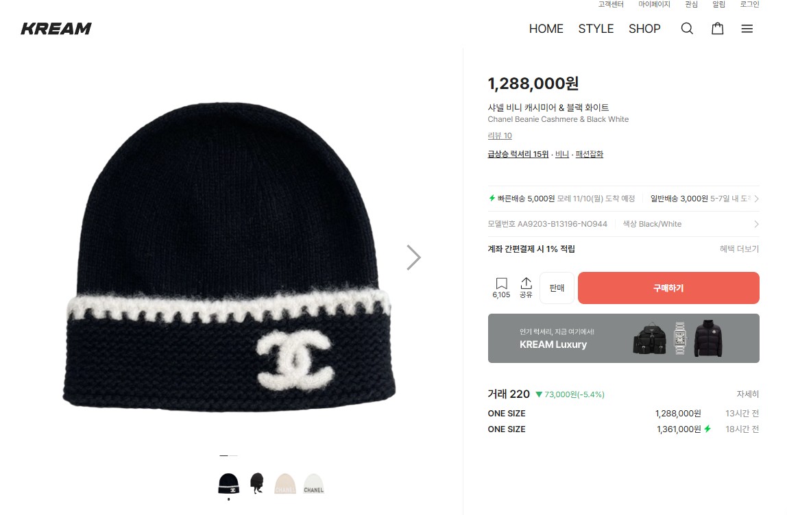 샤넬 리버서블 비니