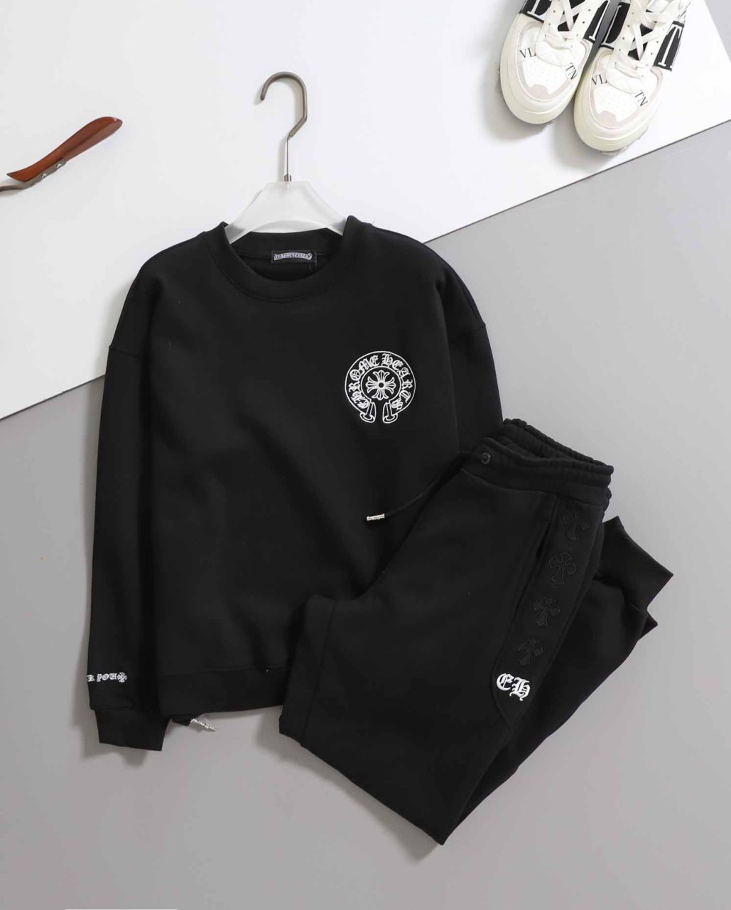 크롬하츠 [ CHROME ] 수입 남여공용 빈티지 세메터리 패치 스틸 맨투맨 & 팬츠 SET-