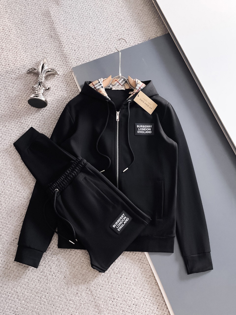 버버리 [BURBERRY] 버버리 후드체크 트리밍 코튼 팬츠 세트