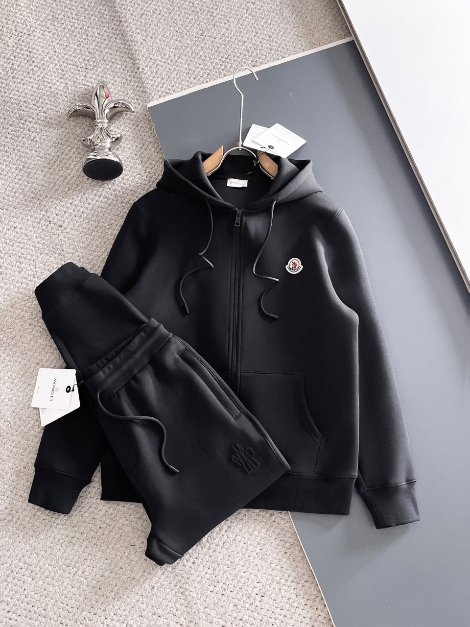 [MONCLER] 몽클레어 블랙 엠보로고 집업 후드 세트