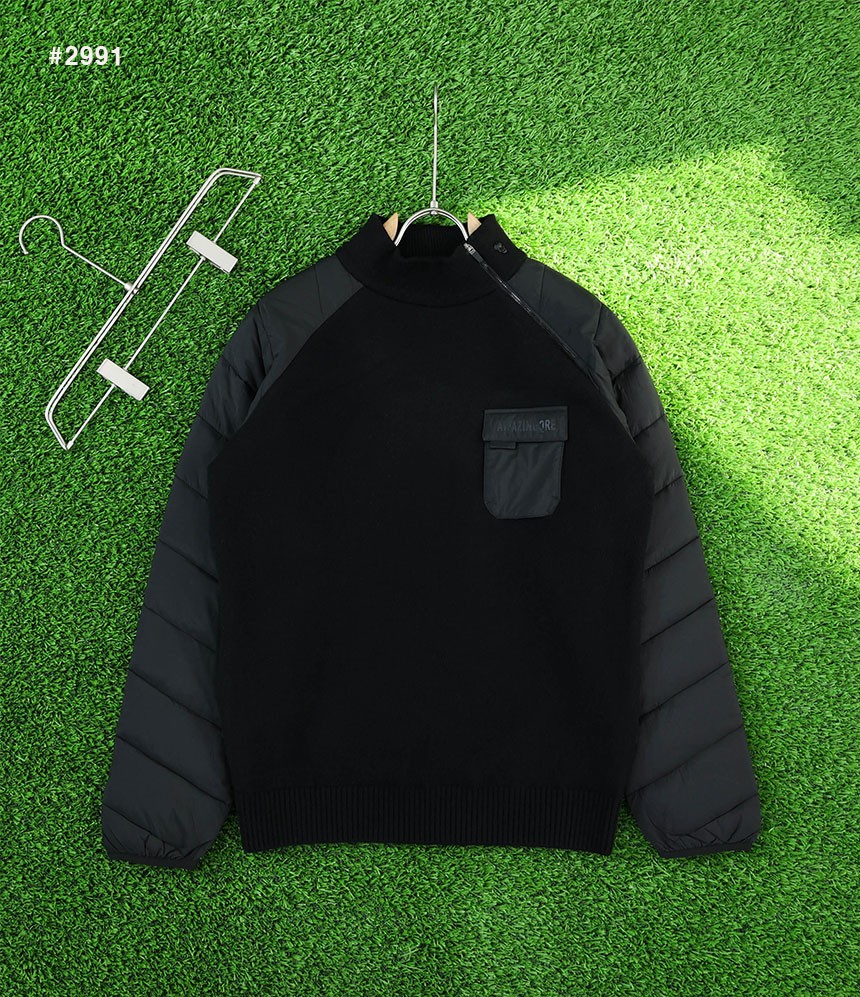 어메이징크리 [AMAZINGCRE] 남성 겨울 프리미엄 패딩니트 골프 티셔츠