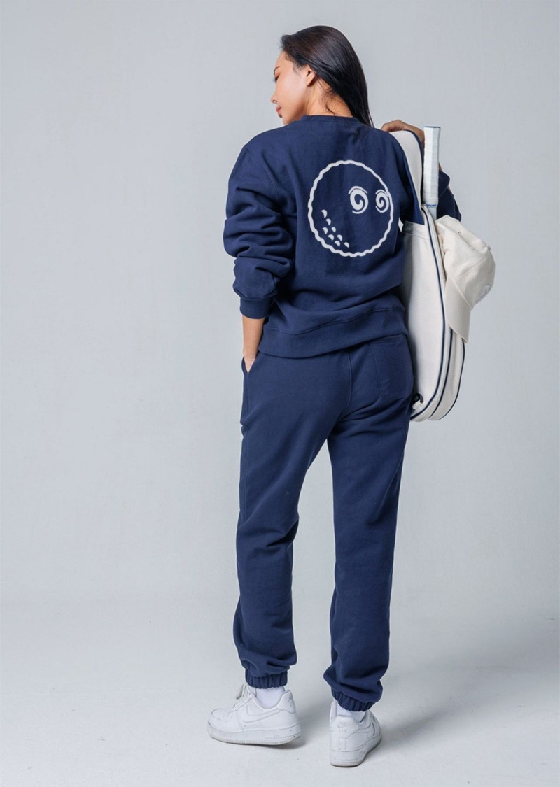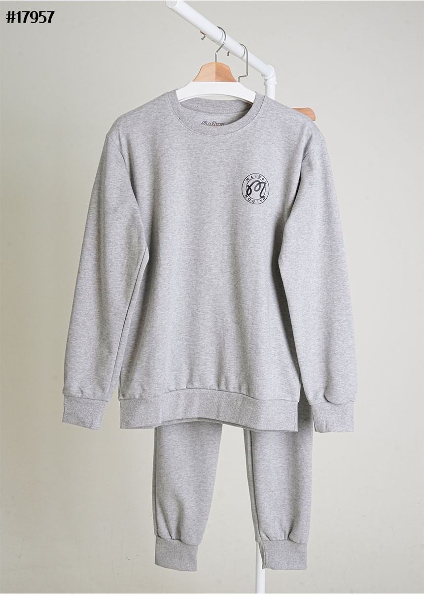 [MALBON] 말본 M 스크립트 써클 로고 그래픽 크루넥 맨투맨 & 밴딩 조거 팬츠 셋