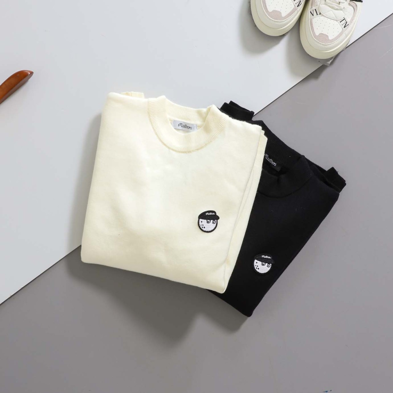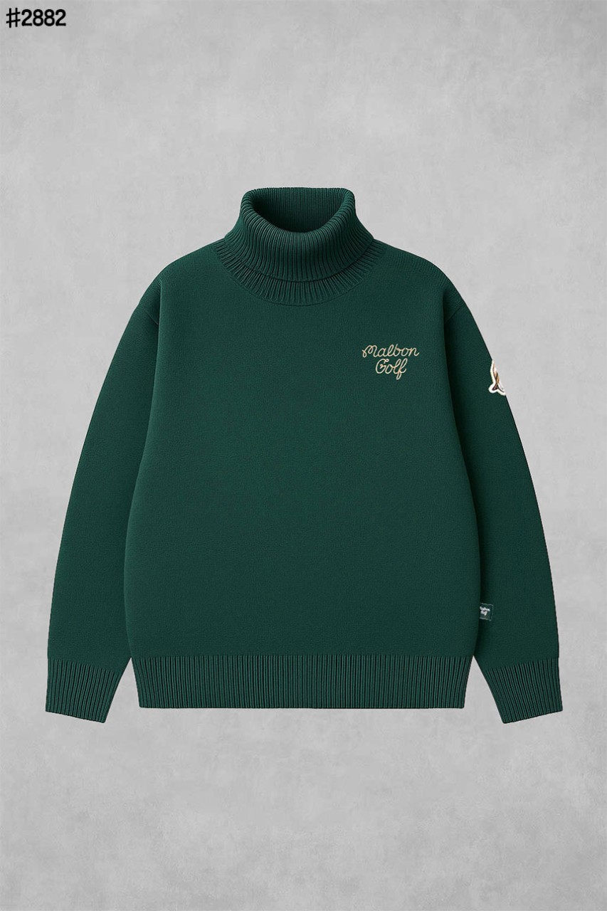 [MALBON] 말본 자수 로고 버킷 패치 메리노 울 터틀넥 니트