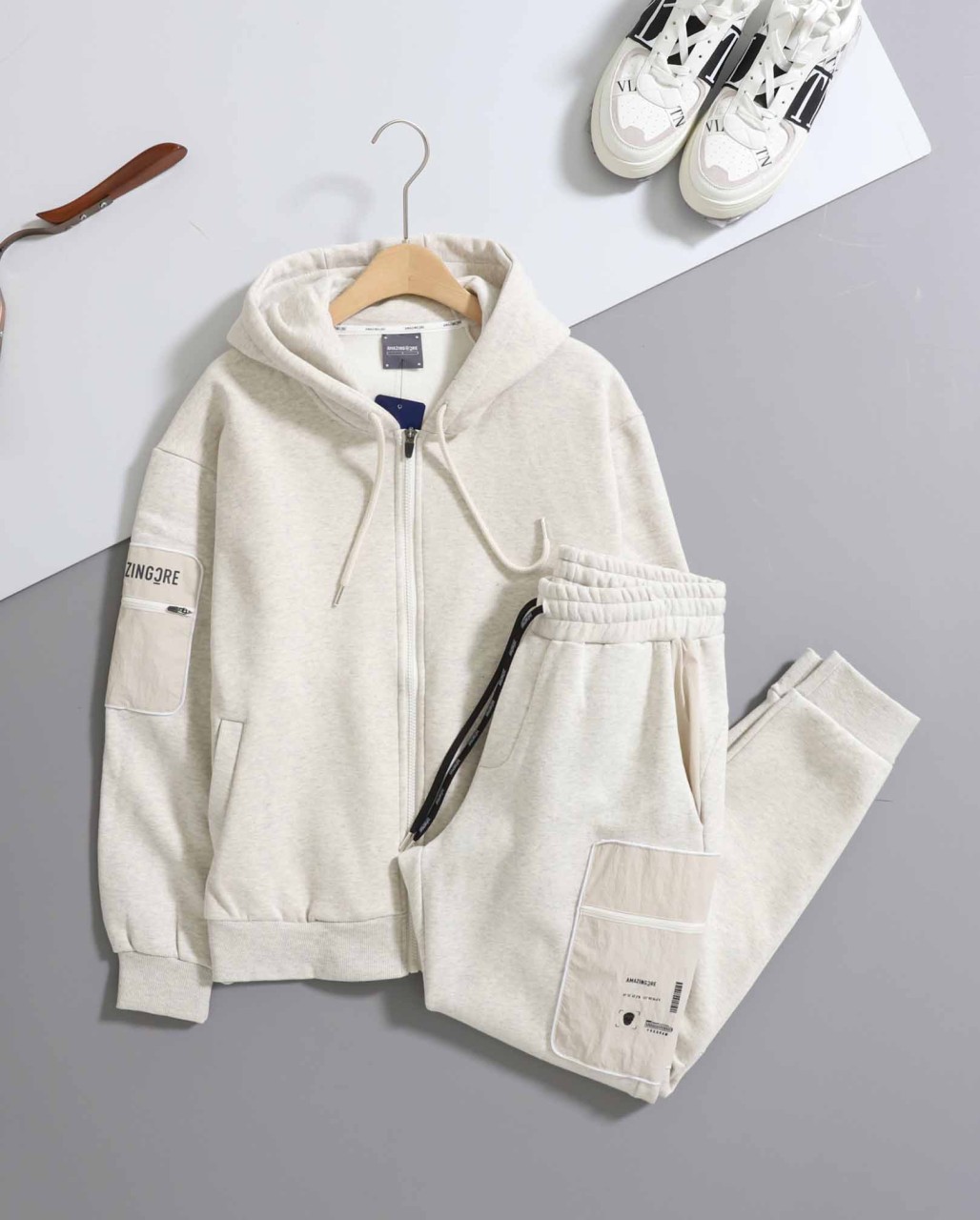 어메이징크리 [ AMCR ] 포인트 포켓 후드 집업 & 기모 조거 팬츠 set