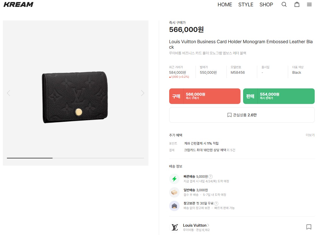 루이비통 비즈니스 카드 홀더 모노그램 엠보스 레더 블랙