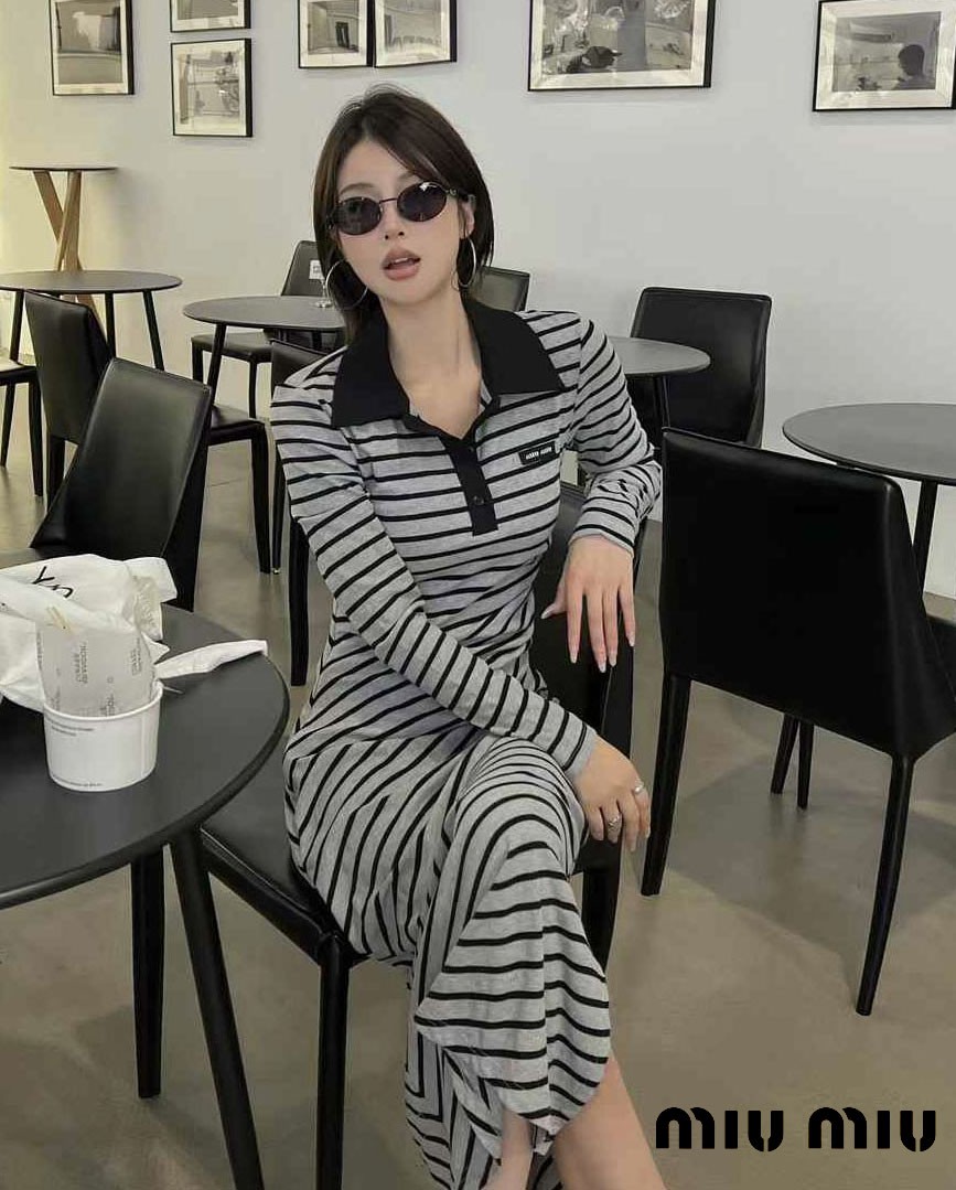 미우미우 [ miu ] 수입 스트라이프 셔링 롱 드레그