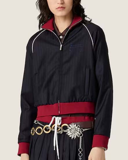 미우미우 [ miu ] 수입 핀스트라이프 지퍼 블루종 재킷