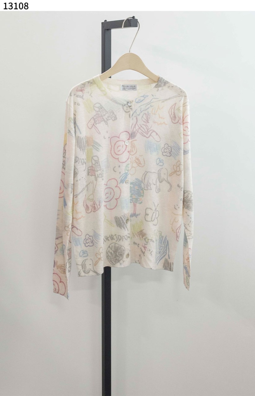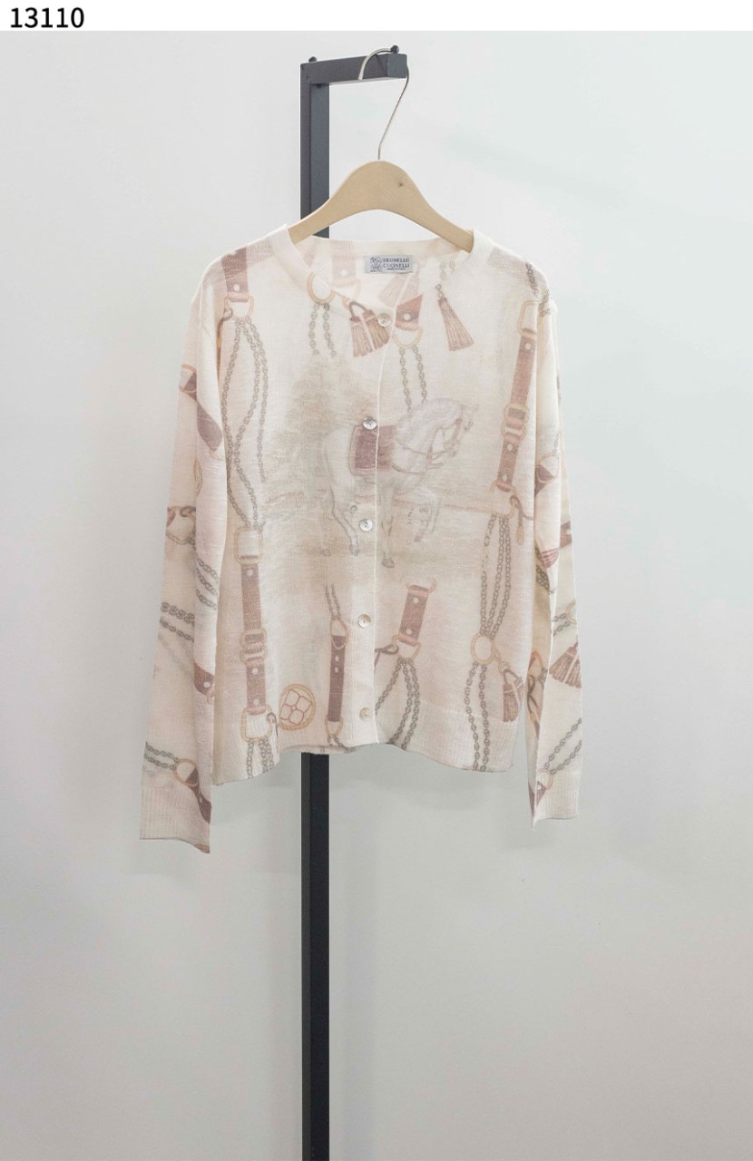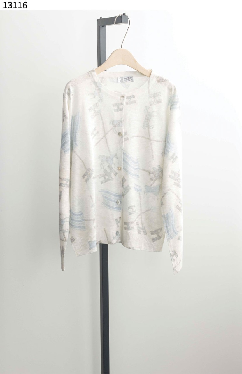 브루넬로쿠치넬리 [Brunello Cucinelli] 여성 스탬프 모노그램 매쉬 니트 가디건