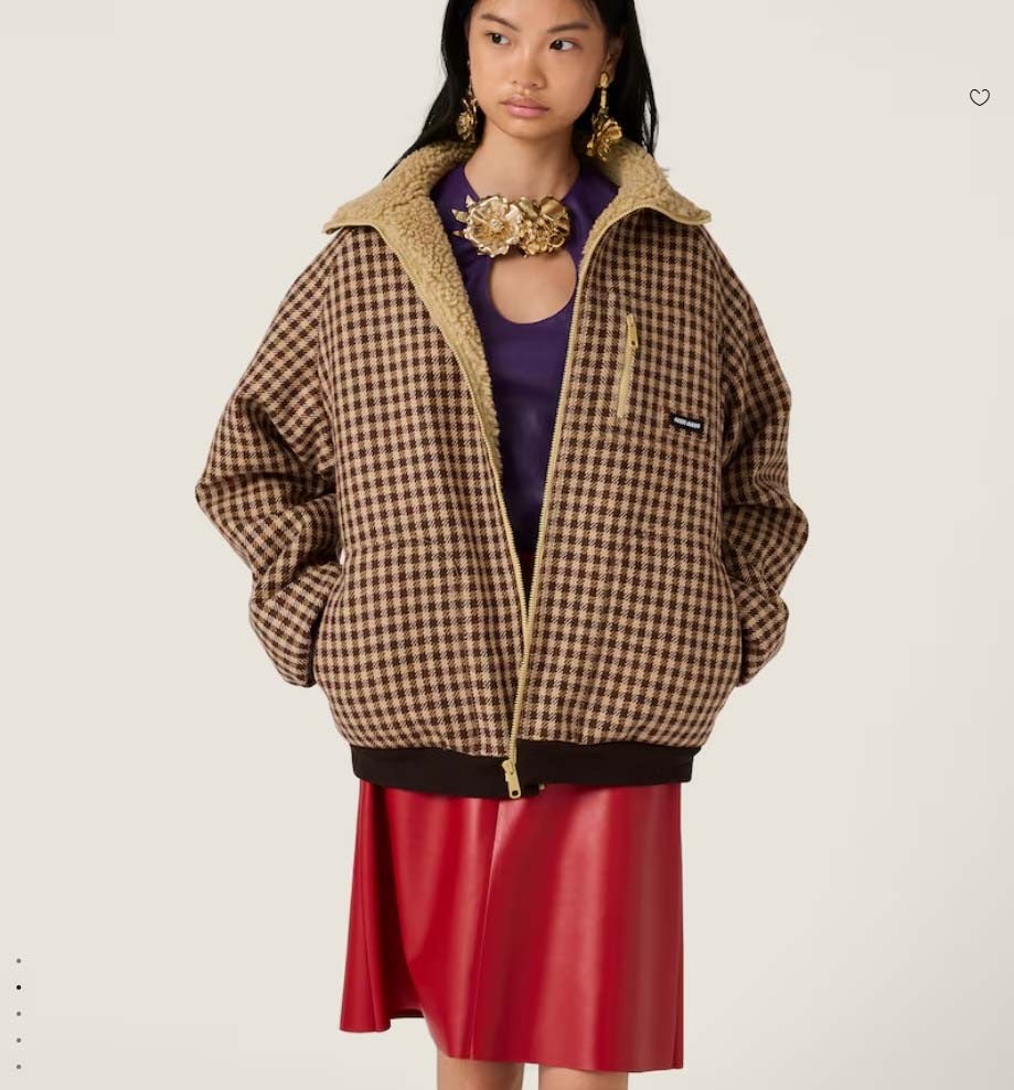 미우미우 [ miu ] 수입 플리스 안감 체크 블루종 재킷