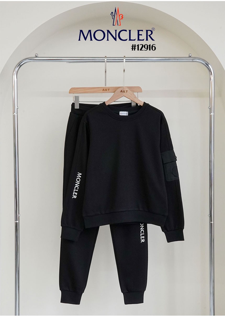 [MONCLER] 몽클레어 레터링 자수 로고 포켓 맨투맨 & 조거 팬츠 셋