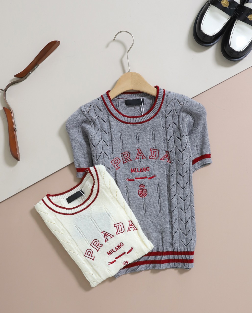 프라다 [ P*ADA ] 밀라노 로고 자수 반팔니트