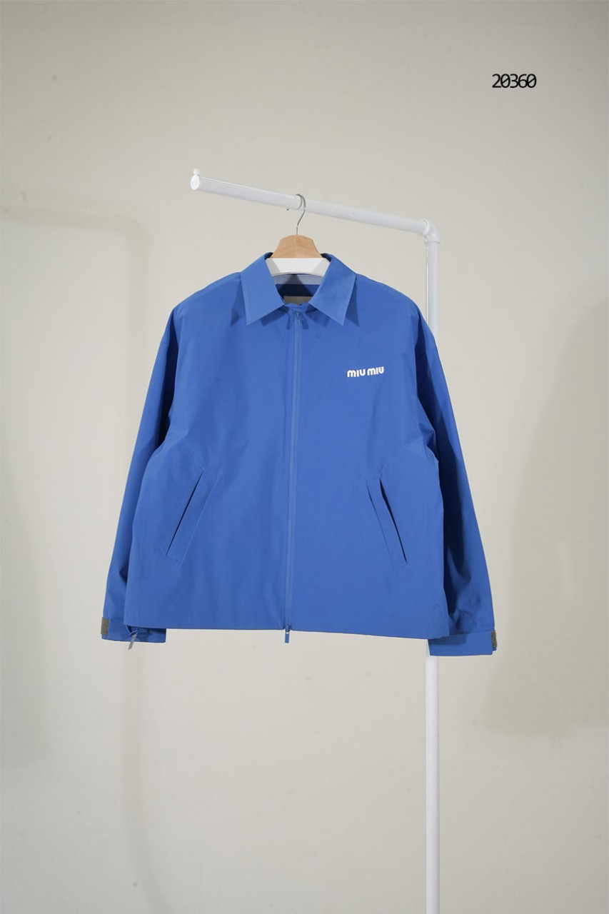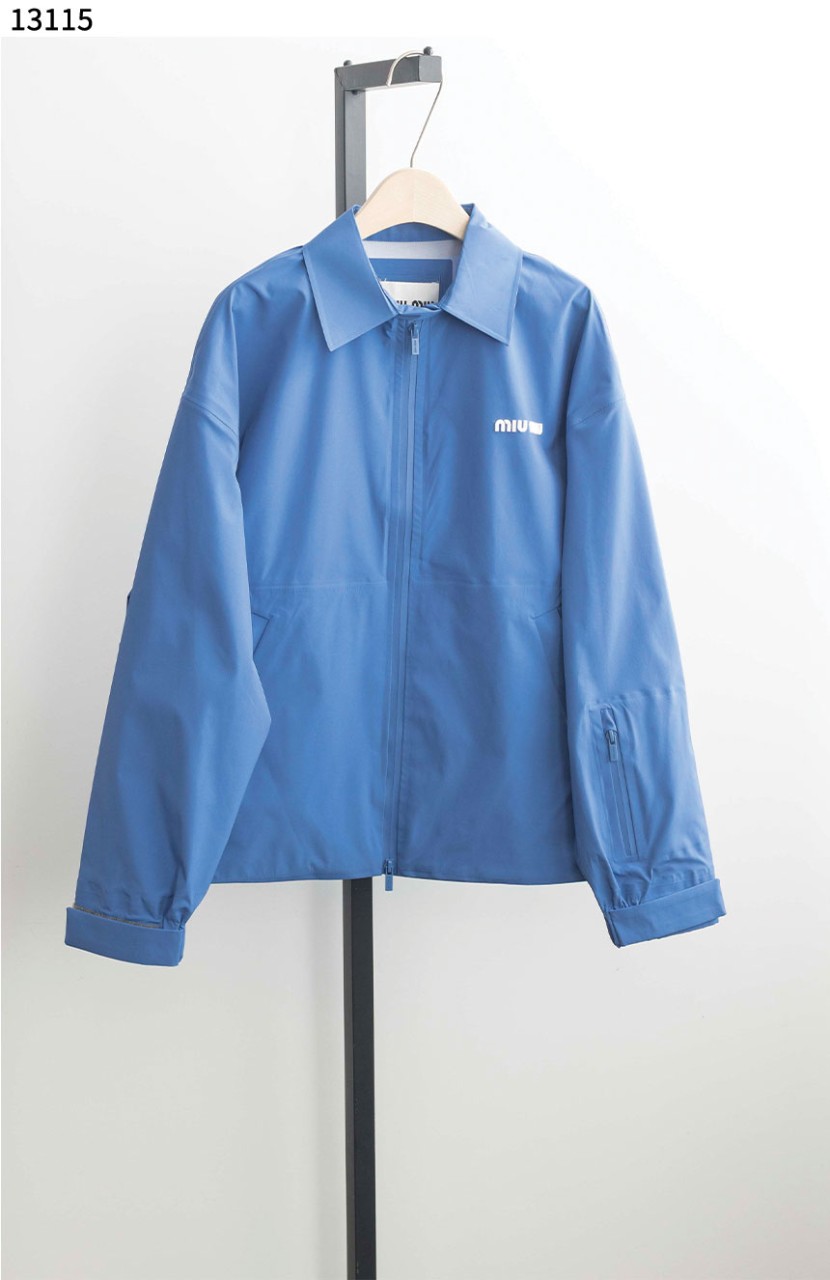 [MIUMIU] 미우미우 스몰 로고 블루 미니멀 집업 자켓