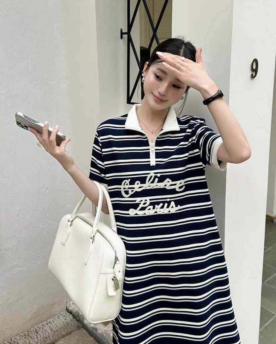 셀린느 [ C*LINE ] 수입 마린 지퍼넥 스트라이프 폴로 드레스