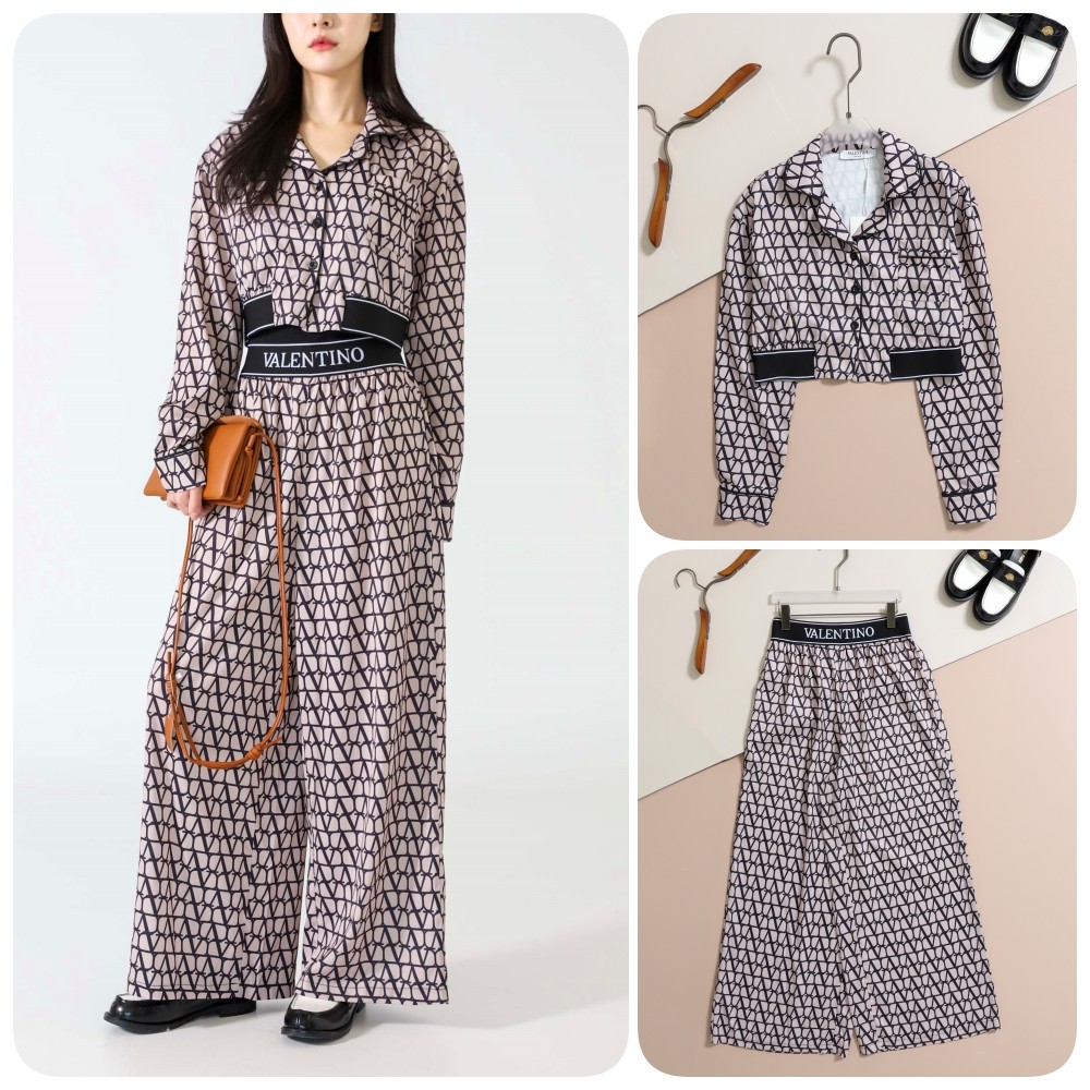 발렌티노 [ V.L.T.N ] 수입 실크 크레이프 가라바니 로고패턴 상.하 SET 바지