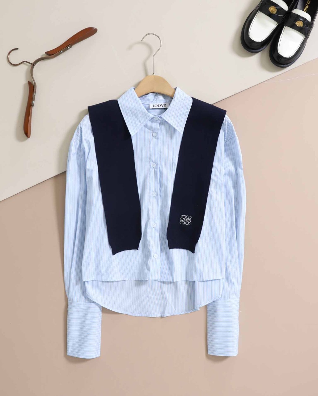 로에베 [ L*EWE ] 수입 숄카라 스트라이프 케이프 셔츠