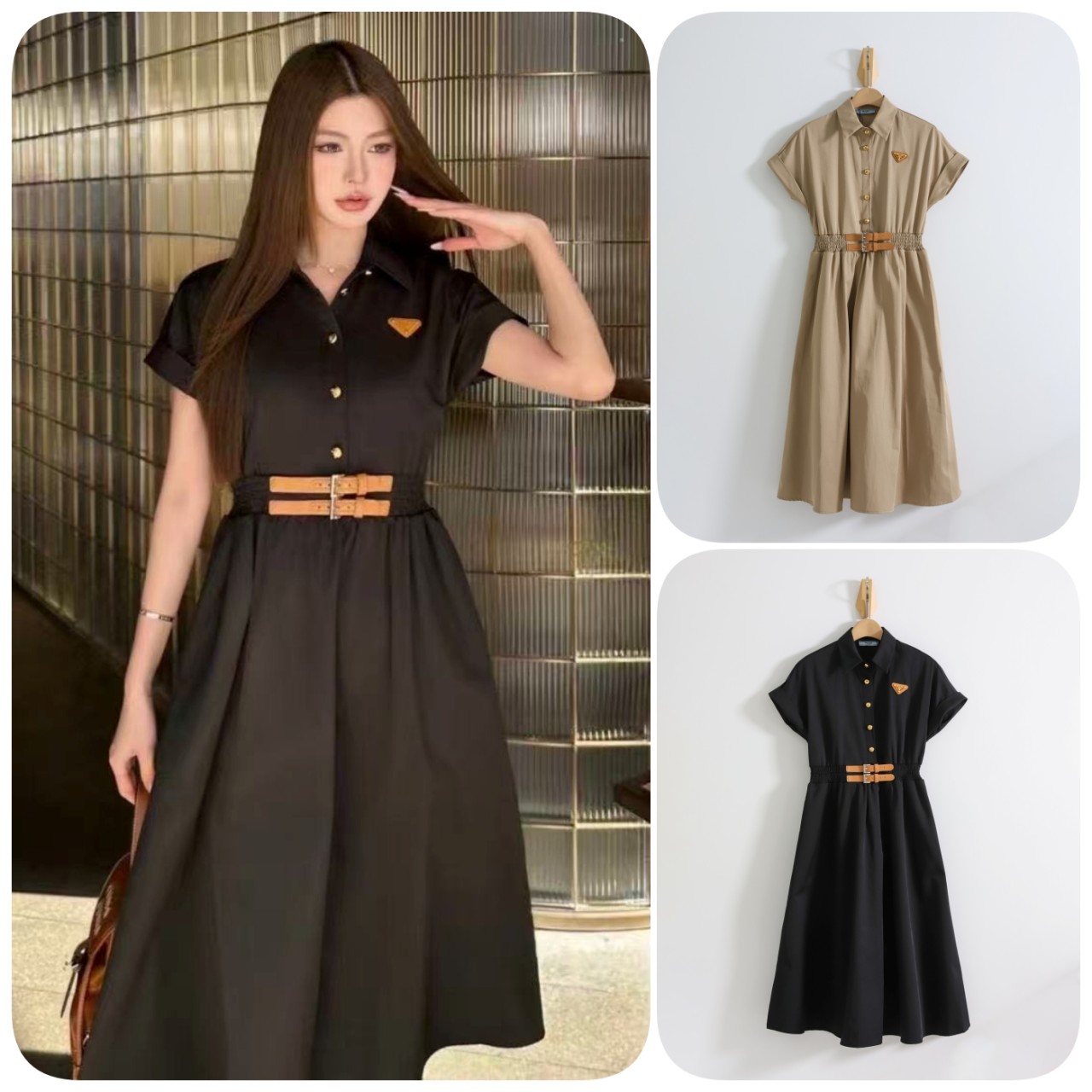 프라다 [ P*ADA ] 스모크드 웨이스트 셔츠 드레스