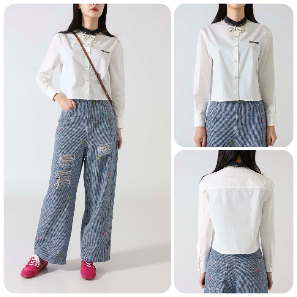 미우미우 [ miu ] 수입 슬러브 비쥬 리본 포플린 셔츠