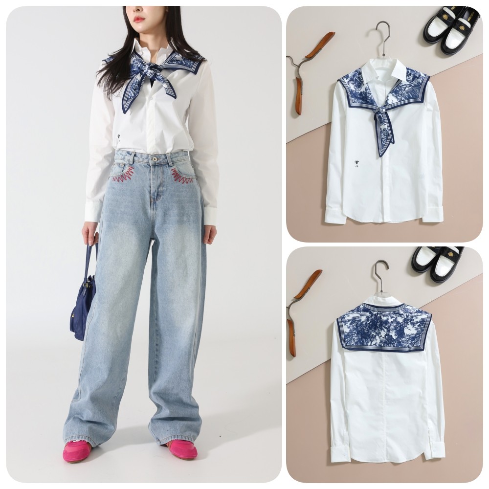 디올 [ D*OR ] 수입 코튼 포플린 블라우스 & 네이비블루 실크 트윌 SET