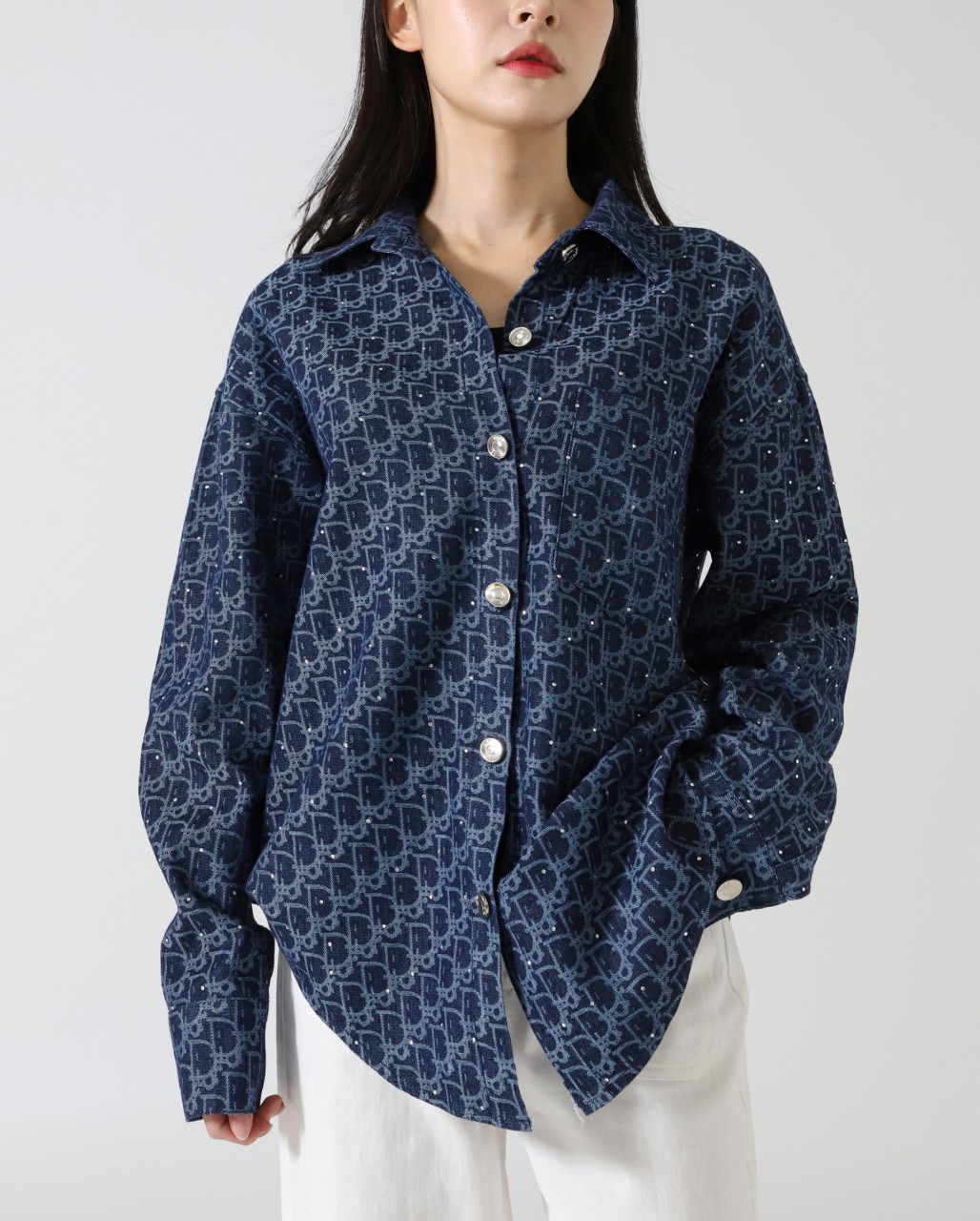 디올 [ D*OR ] 수입 여성 오블리크 코튼 블렌드 데님셔츠