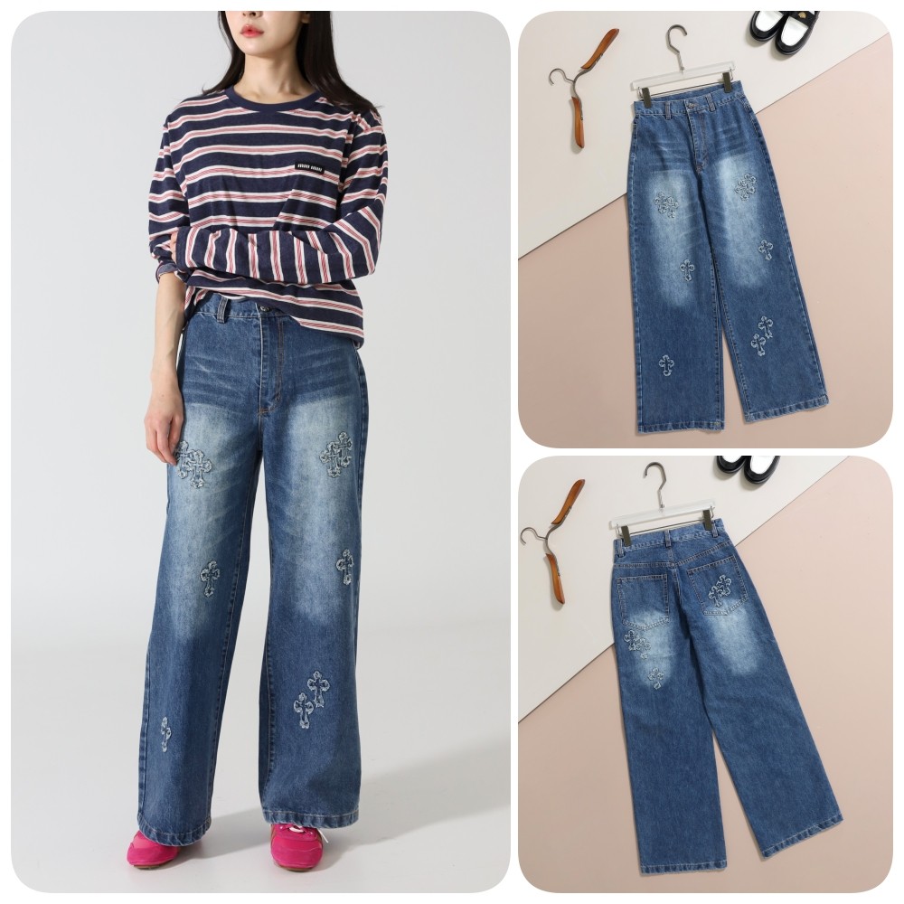 크롬하츠 [ CROME ] 수입 여성 크로스 디테일 세미와이드 진