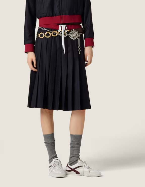 미우미우 [ miu ] 수입 플리츠 핀스트라이프 미디 스커트