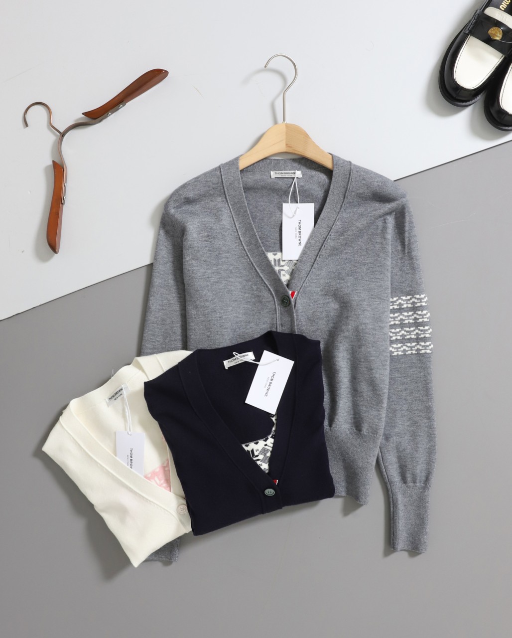 [THOM BROWNE] 톰브라운 홀리데이 헥터 인타르시아 브이넥 가디건