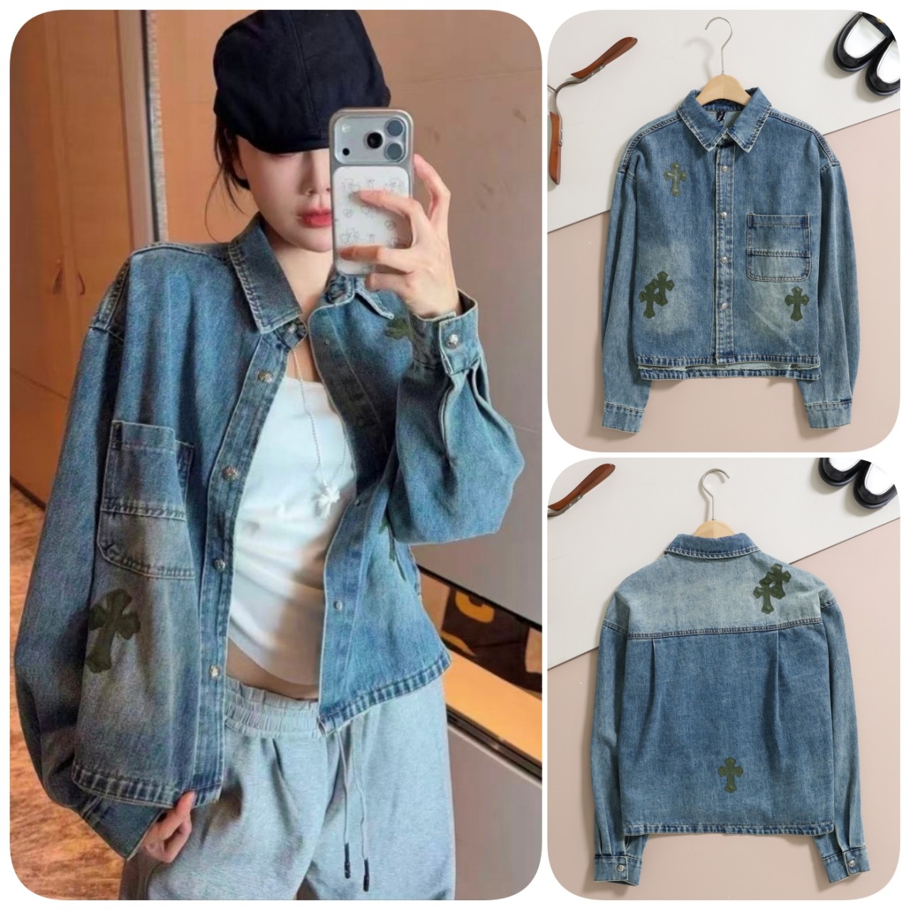 크롬하츠 [ CHROME ] 수입 크로스 패치 데님 셔츠 자켓
