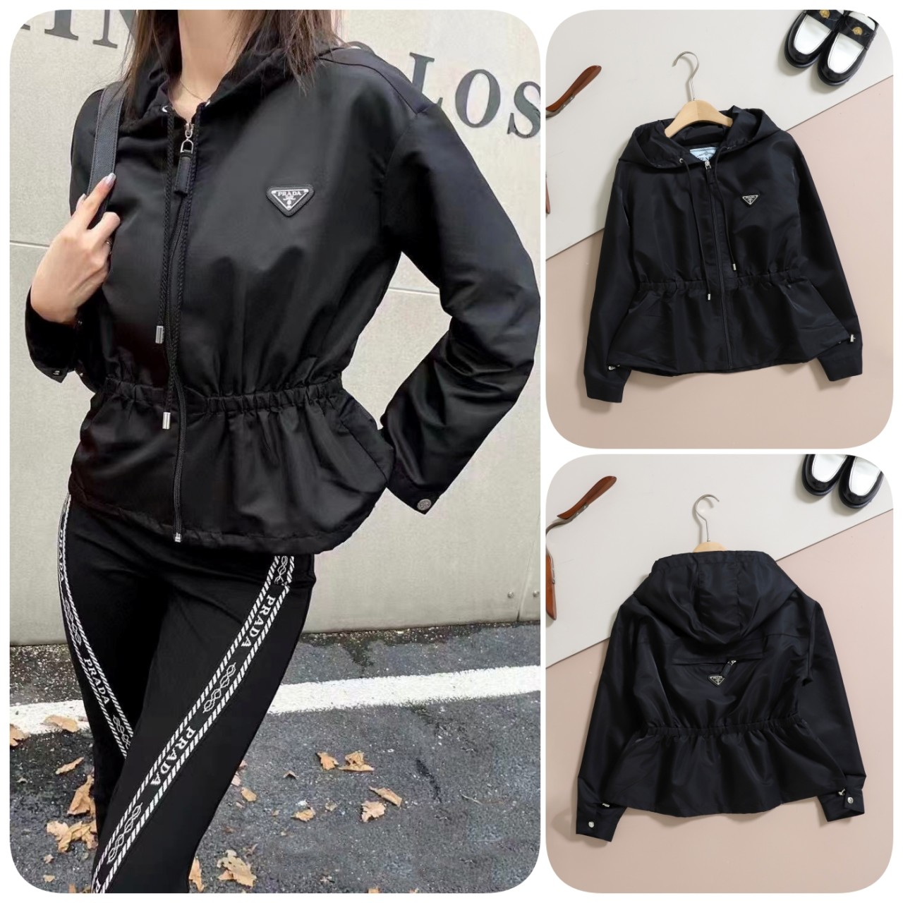 프라다 [ P*ADA ] 수입 삼각로고 컴피 우븐 자켓 & 스커트 세트 -블랙-