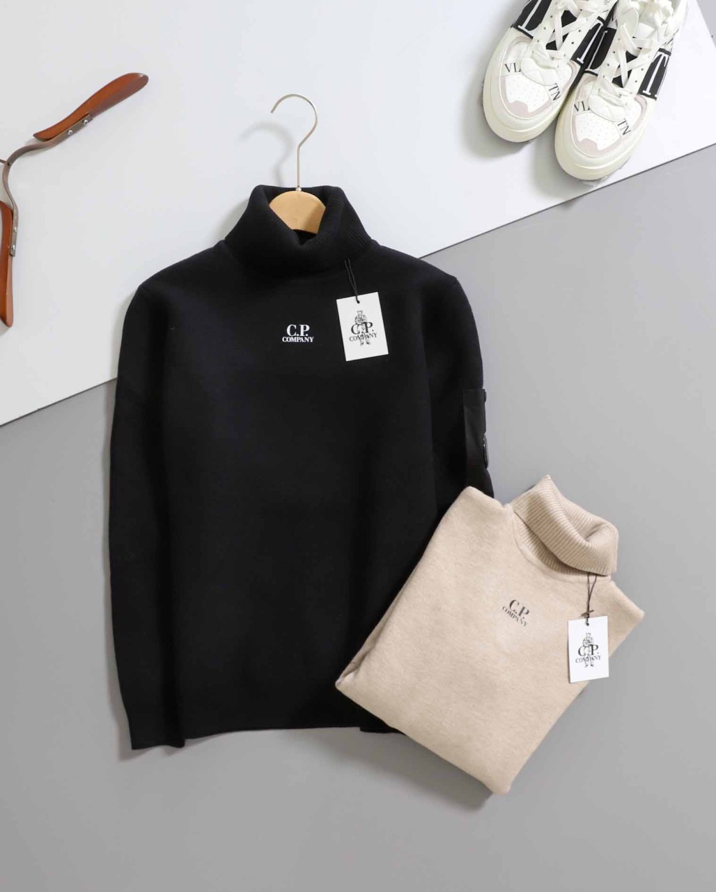 시피컴퍼니 [ C.P ] 로고 포인트 니트 터틀넥 스웨터