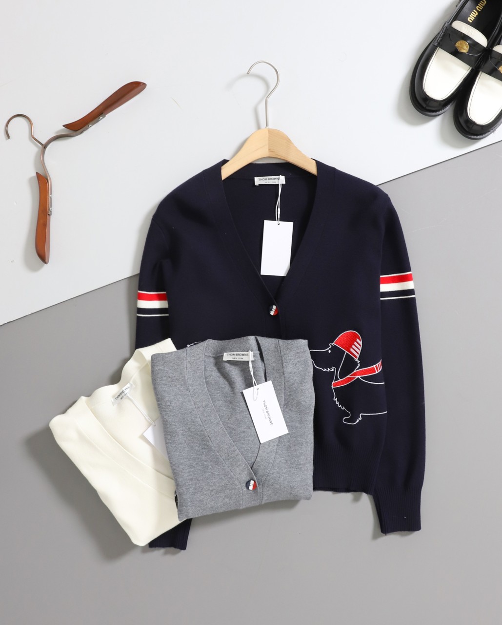 톰브라운 [ THOM ] 강아지 자수 완장 니트 가디건 가디건