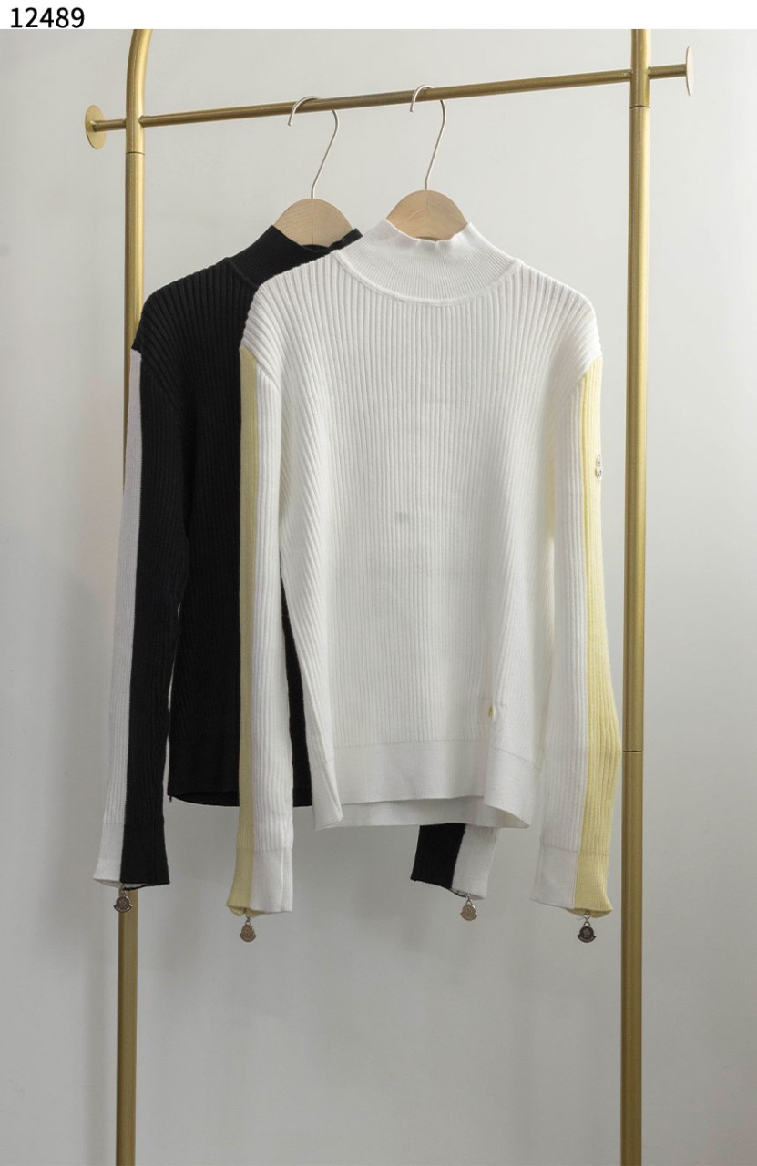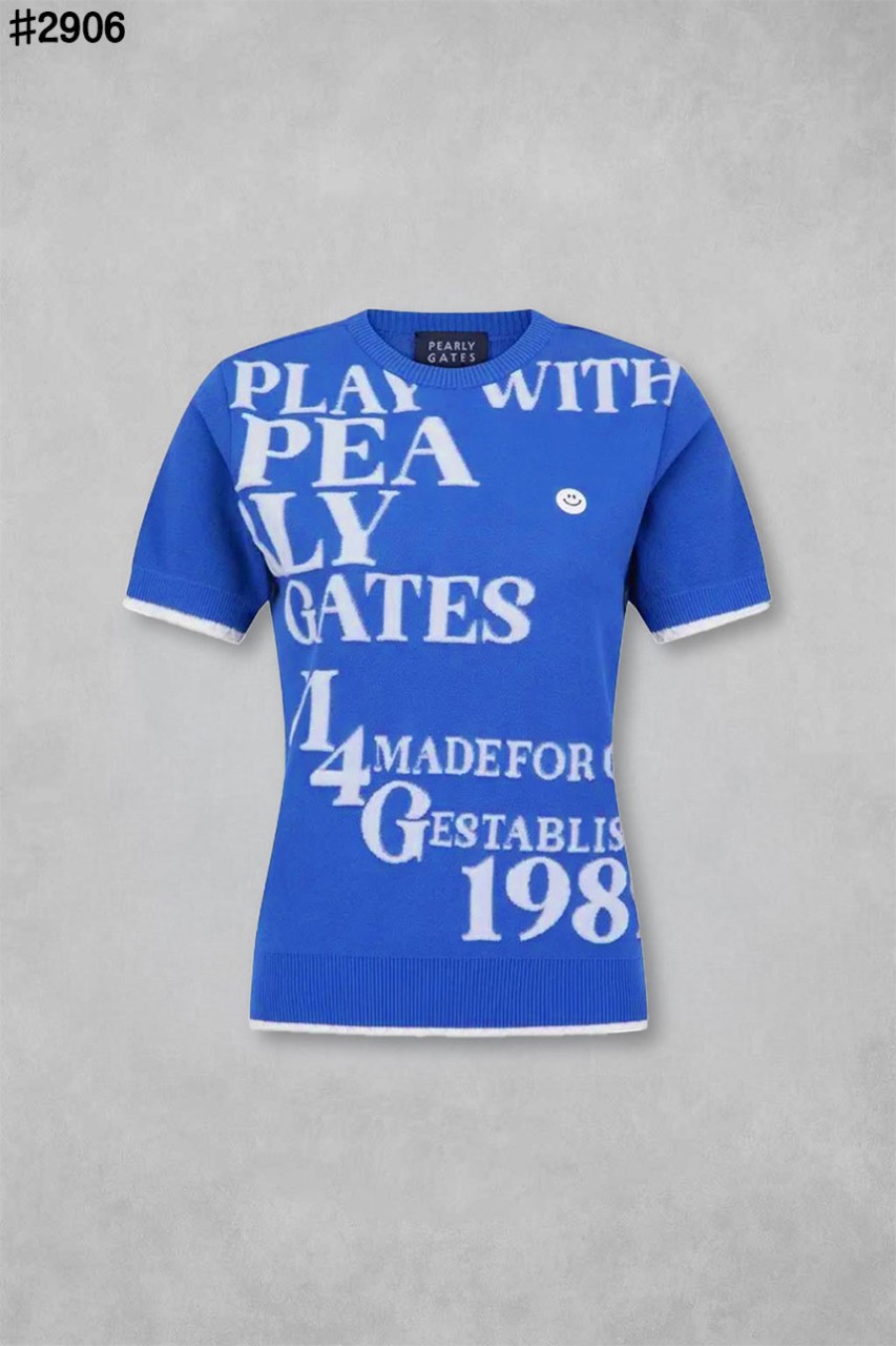 [PEARLY GATES] 파리게이츠 레이스 엠보 레터링 하프 니트 탑