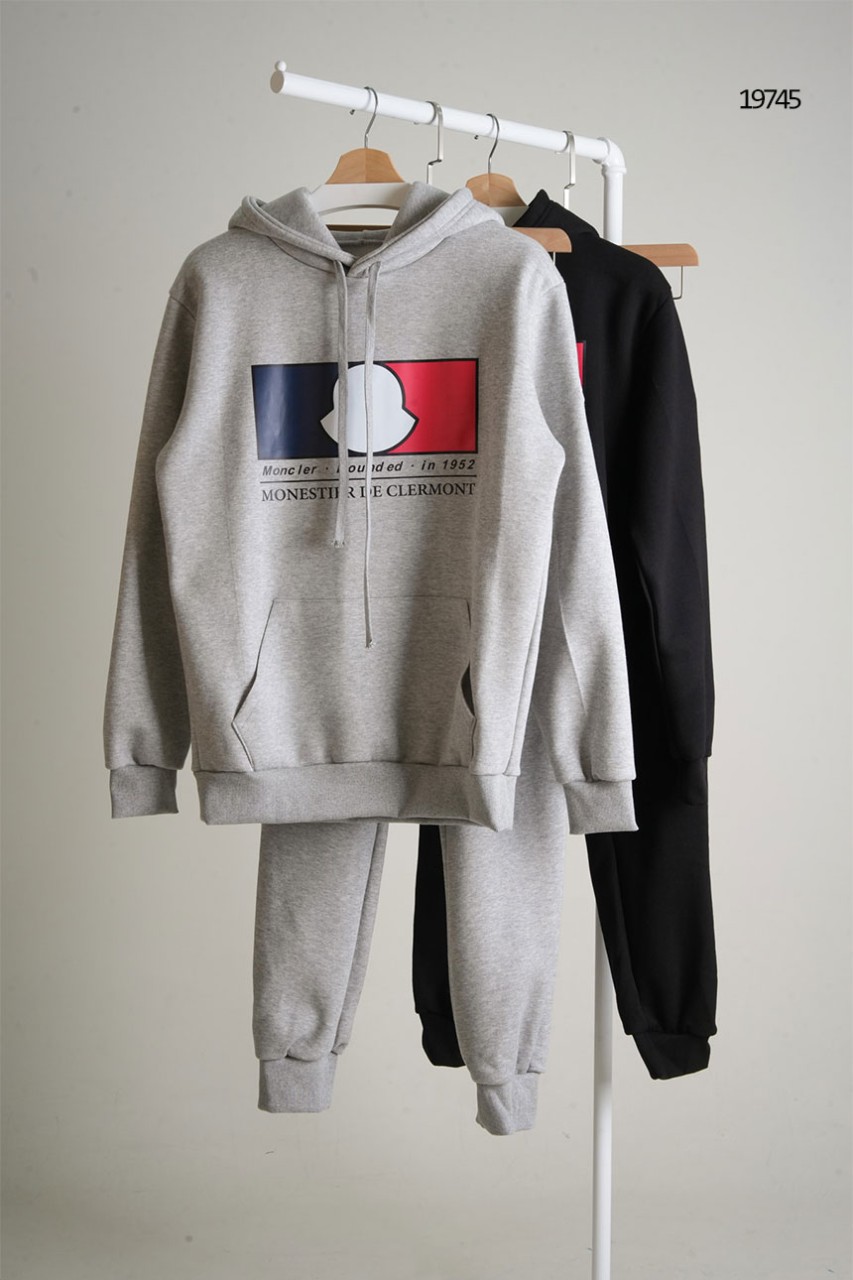 [MONCLER] 몽클레어 전면 그래픽로고 후드 맨투맨 조거셋