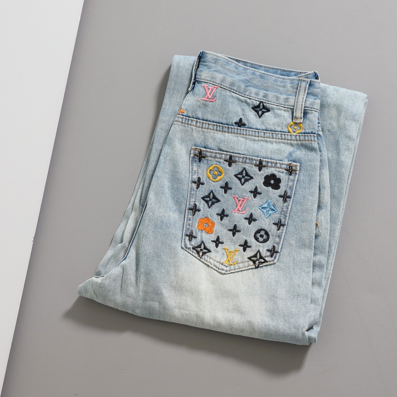 루이비통 [ L.V ] 수입 멀티컬러 모노그램 자수 데님 팬츠