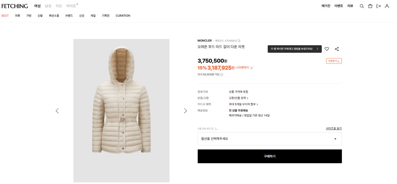 몽클레어 오레돈 미드 다운 자켓 Oredon