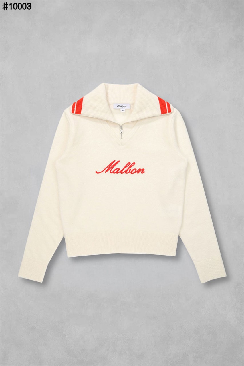 [MALBON] 말본 여성 이니셜 배색 하프 집업 니트 스웨터