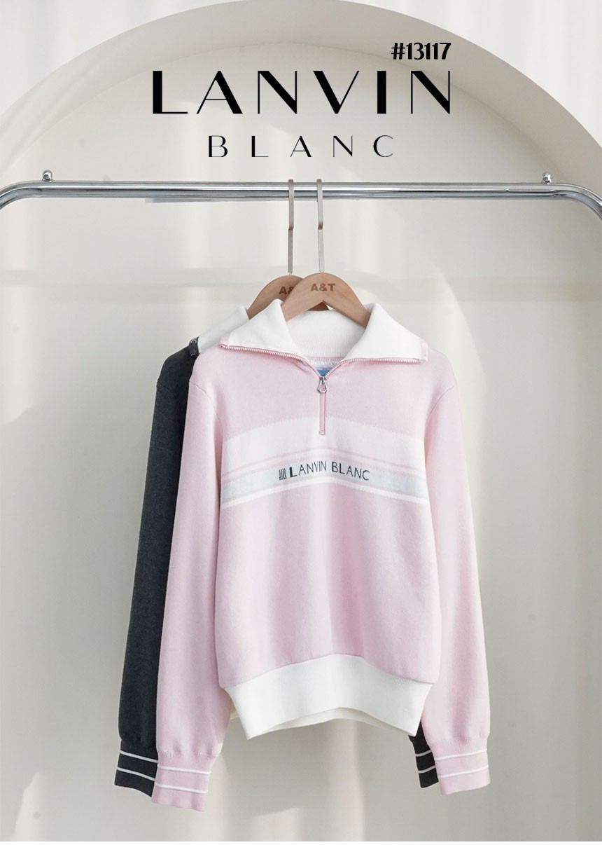 [LANVIN BLANC] 랑방블랑 골프웨어 울 인타르시아 하프 집업 니트 탑