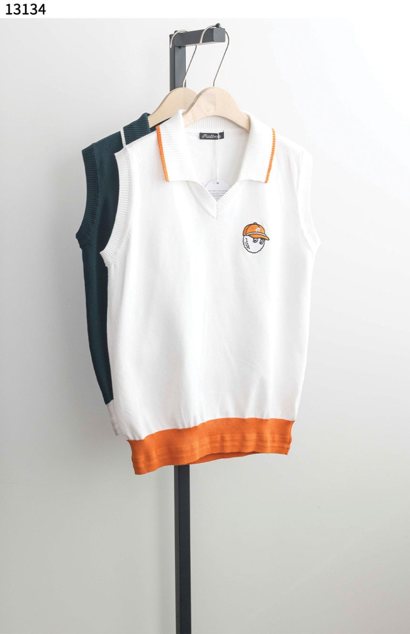 말본 [MALBON] 배색 포인트 슬리브리스 니트